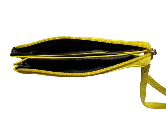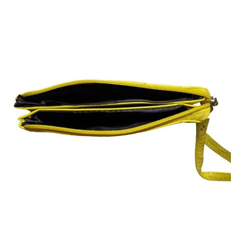 Γυναικείο πορτοφόλι κίτρινο χρώμα με καπιτονέ υφή κατασκευασμένο από PU τεχνόδερμα, φοδραρισμένο εσωτερικά, μοντέρνο και ευρύχωρο καθότι χωράει και ταυτότητα καθώς και αλλά μικροαντικείμενα. Το πορτοφόλι ανοίγει με φερμουάρ και διαθέτει 3 εσωτερικές θήκες επίσης διαθέτει αποσπώμενο λουράκι.