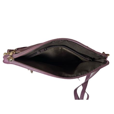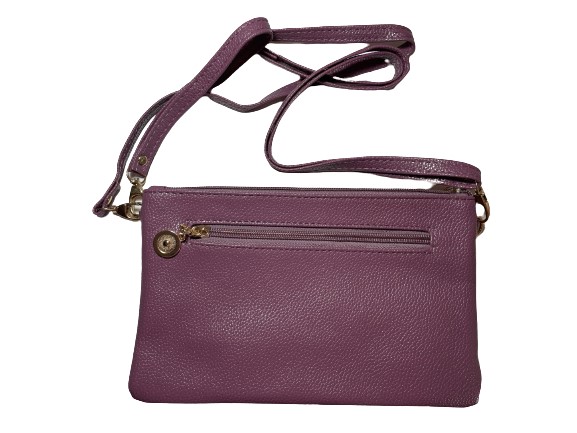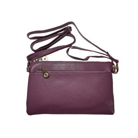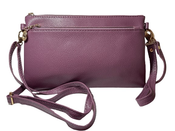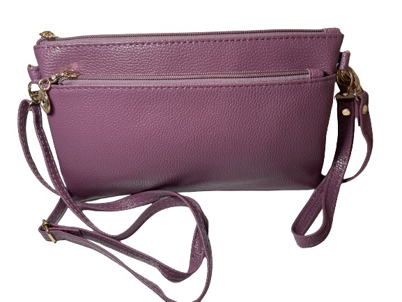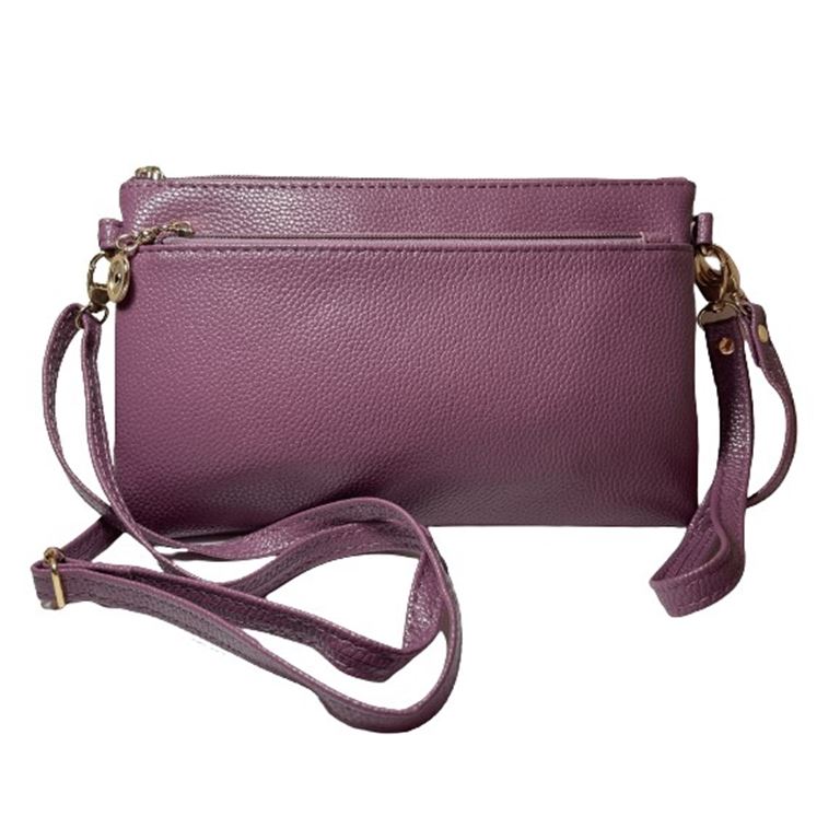 Γυναικεία τσάντα μωβ χρώμα, κατασκευασμένη από μαλακό και ανθεκτικό PU τεχνόδερμα, φοδραρισμένη πλήρως εσωτερικά, με κλασικό και μοντέρνο στύλ προσφέρει κομψότητα με την φιλοσοφία να είναι κατάλληλη για κάθε χώρο συγκέντρωσης, ιδιωτικά ραντεβού, πάρτυ και δείπνο. Η τσάντα διαθέτει 1 κεντρική θήκη με φερμουάρ,2 θήκες με φερμουάρ μπροστά και πίσω και 1 θήκη με φερμουάρ εσωτερικά επίσης διαθέτει 2 αποσπώμενα λουράκια (Ώμου-χειρός). Διαστάσεις Μήκος 24cm,Yψος 16cm, Πλάτος 3cm.