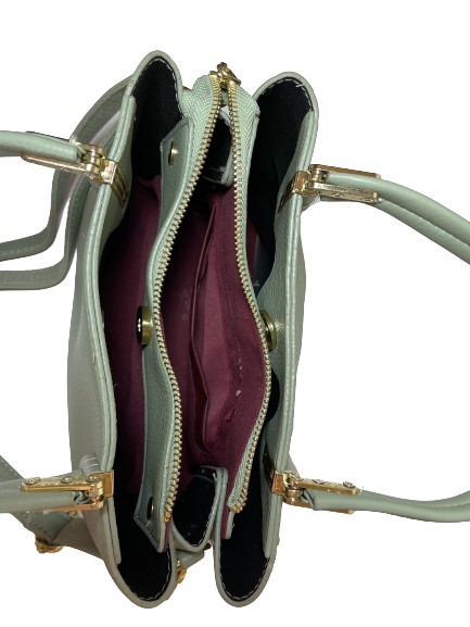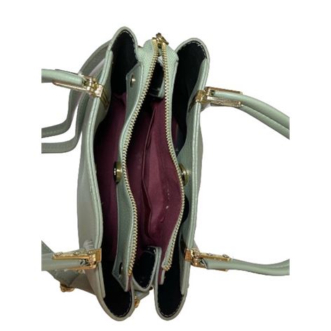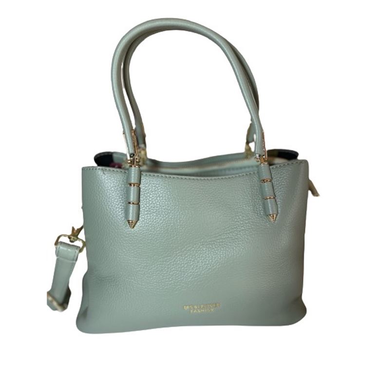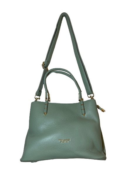 Γυναικεία τσάντα ώμου DFS LEATHER FASHION πράσινο χρώμα και μεταλλικές λεπτομέρειες σε χρυσό χρώμα, με διπλό μακρύ λουράκι και χειρολαβές κατασκευασμένη από τεχνόδερμα ανωτέρας ποιότητος, ιδανική επιλογή για όλες τις ώρες της ημέρας, διαθέτει 2 θήκες και κούμπωμα με μαγνήτη και 1 κεντρική θήκη με φερμουάρ. Είναι ευρύχωρη με μεγάλους εσωτερικούς χώρους. Διαστάσεις Mήκος 24cm ,Ύψος 12cm,Πλάτος 5cm.