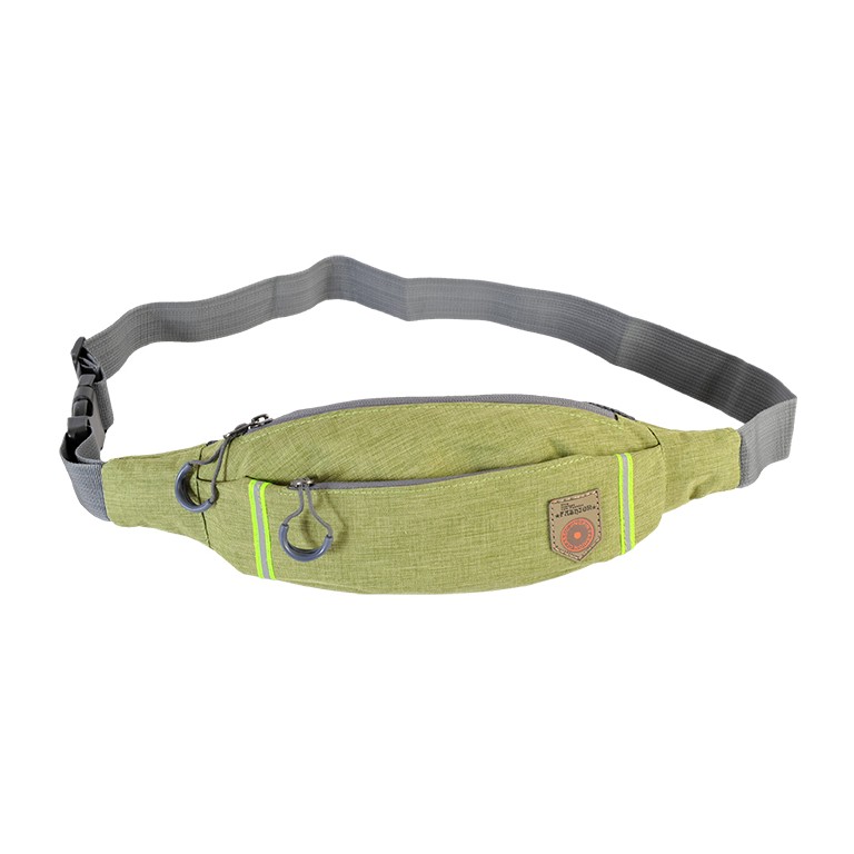 Unisex τσαντάκι μέσης υφασμάτινο χρώματος πράσινο με διπλές ραφές, πλήρως φοδραρισμένο, με ρυθμιζόμενο ιμάντα προσαρμογής στη μέση άνετο με τέλεια εφαρμογή πάνω σας . Διαστάσεις M x Y x Π (cm) 35 x 7,5 x 12 Το τσαντάκι διαθέτει 1 κεντρική θήκη με φερμουάρ, ,1 θήκη με φερμουάρ μπροστά.