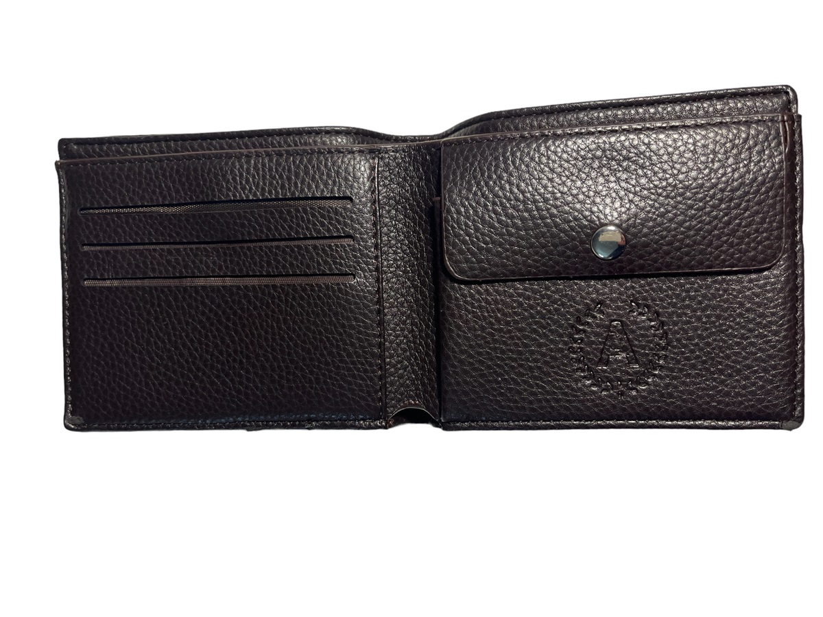 Κλασικό ανδρικό πορτοφόλι με σαγρέ υφή, υλικό PU (Τεχνόδερμα), φοδραρισμένο αρίστης ποιότητος υλικό κατασκευής, διαστάσεις μήκος (cm) 12 ύψος 10 πλάτος 2,Το πορτοφόλι διαθέτει, 1 θήκη για κέρματα με κουμπί,3 θήκες για κάρτες, 2 θήκες για χαρτονομίσματα και 1 εσωτερική θήκη με φερμουάρ μία πολύ καλή επιλογή για δώρο στα αγαπημένα σας πρόσωπα.