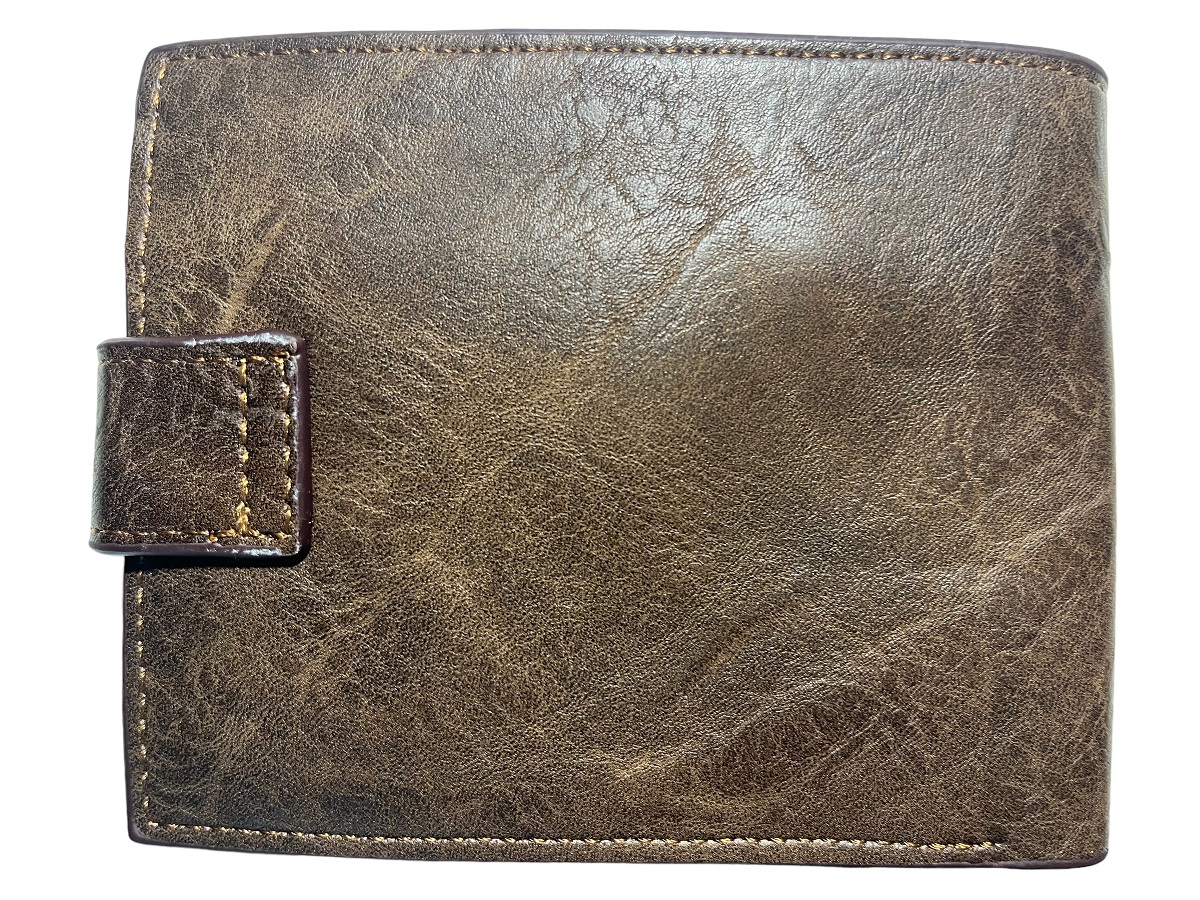 Πορτοφόλι ανδρικό καφέ με κούμπωμα με σαγρέ υφή