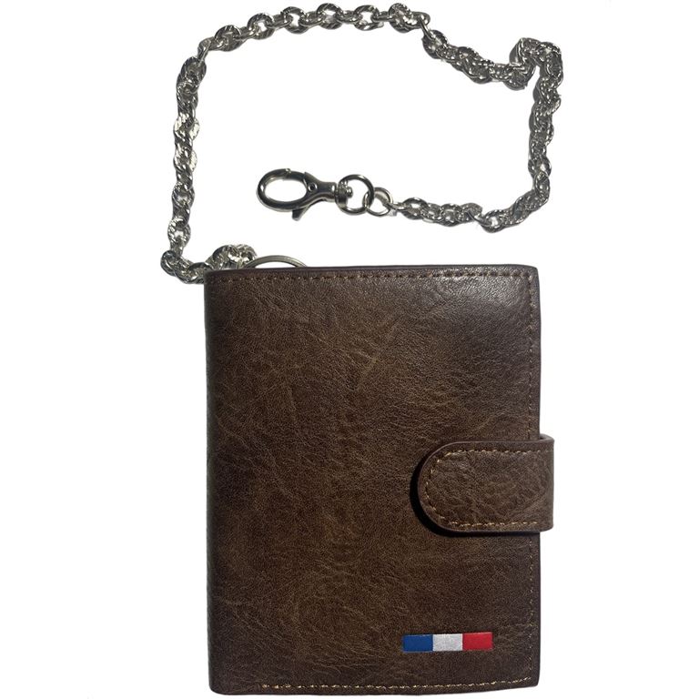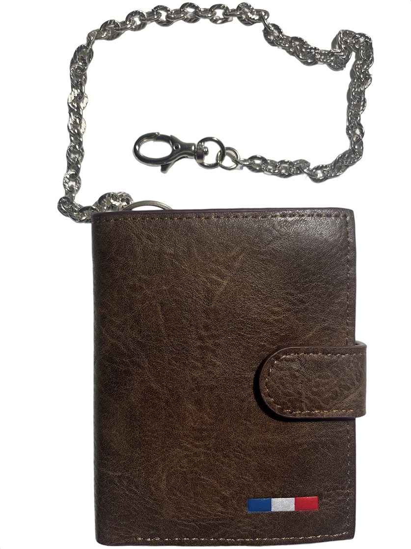 Ανδρικό κάθετο πορτοφόλι υλικό PU τεχνόδερμα με ελαφρός σαγρέ υφή. Το πορτοφόλι διαθέτει 6 θήκες για κάρτες-δίπλωμα ένα παράθυρο για φωτογραφία, 1 θήκη για κέρματα, 3 θήκες για χαρτονομίσματα εκ των οποίων η μεσαία με φερμουάρ.