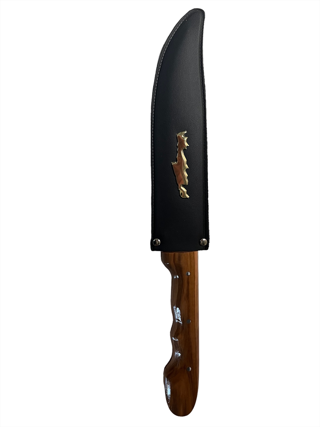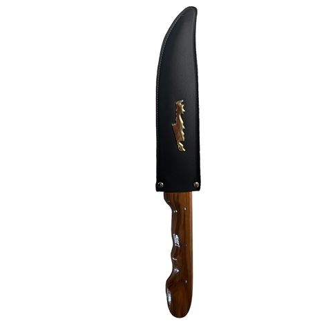 Μαχαίρι Κρητικό χειροποίητο κατασκευασμένο από ανωτάτης ποιότητος μέταλλο ατσάλι με ξύλινη λαβή, ενισχυμένο εσωτερικά με στήριγμα. Η λάμα του μαχαιριού είναι μονοκόμματη μέχρι πίσω στη λαβή για αντοχή σε βάθος χρόνου.