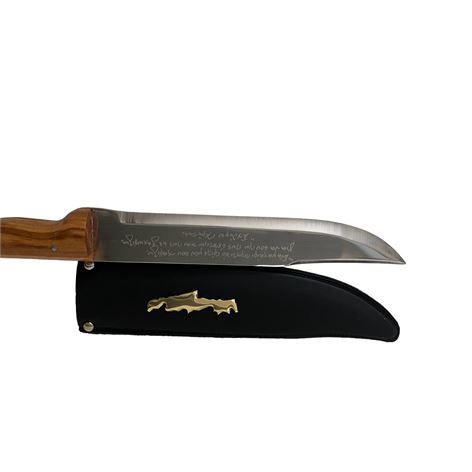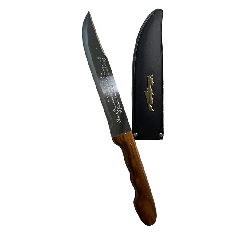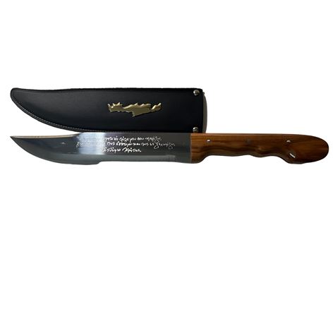 Το μαχαίρι αναγράφει μία τοπική μαντινάδα.