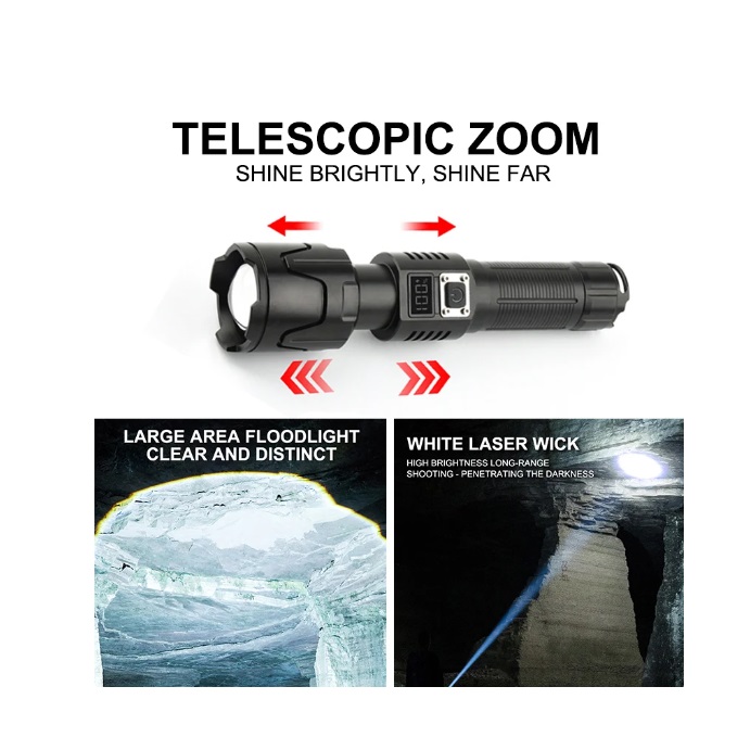 Φακός Led Tactical ο γνήσιος επαναφορτιζόμενος με zoom και 3 επιπλέον λειτουργείες {Multifunctional}, η εμβέλεια του είναι άνω των 500m, έχει ρυθμιζόμενες λειτουργείες φωτός (Υψηλή, χαμηλή, στροβοσκόπειο) ρυθμιζόμενη ακριβείας εστίαση, διαθέτει αντιολισθητική λαβή, ένδειξη μπαταρίας, λευκό φως, το λαμπάκι του είναι τελευταίας τεχνολογίας και είναι άνω των 100 χιλιάδων watt, υλικό κατασκευής αεροναυπηγικό αλουμίνιο και μπορεί να χρησιμοποιηθεί και σαν power bank για φόρτιση άλλων αντικειμένων.