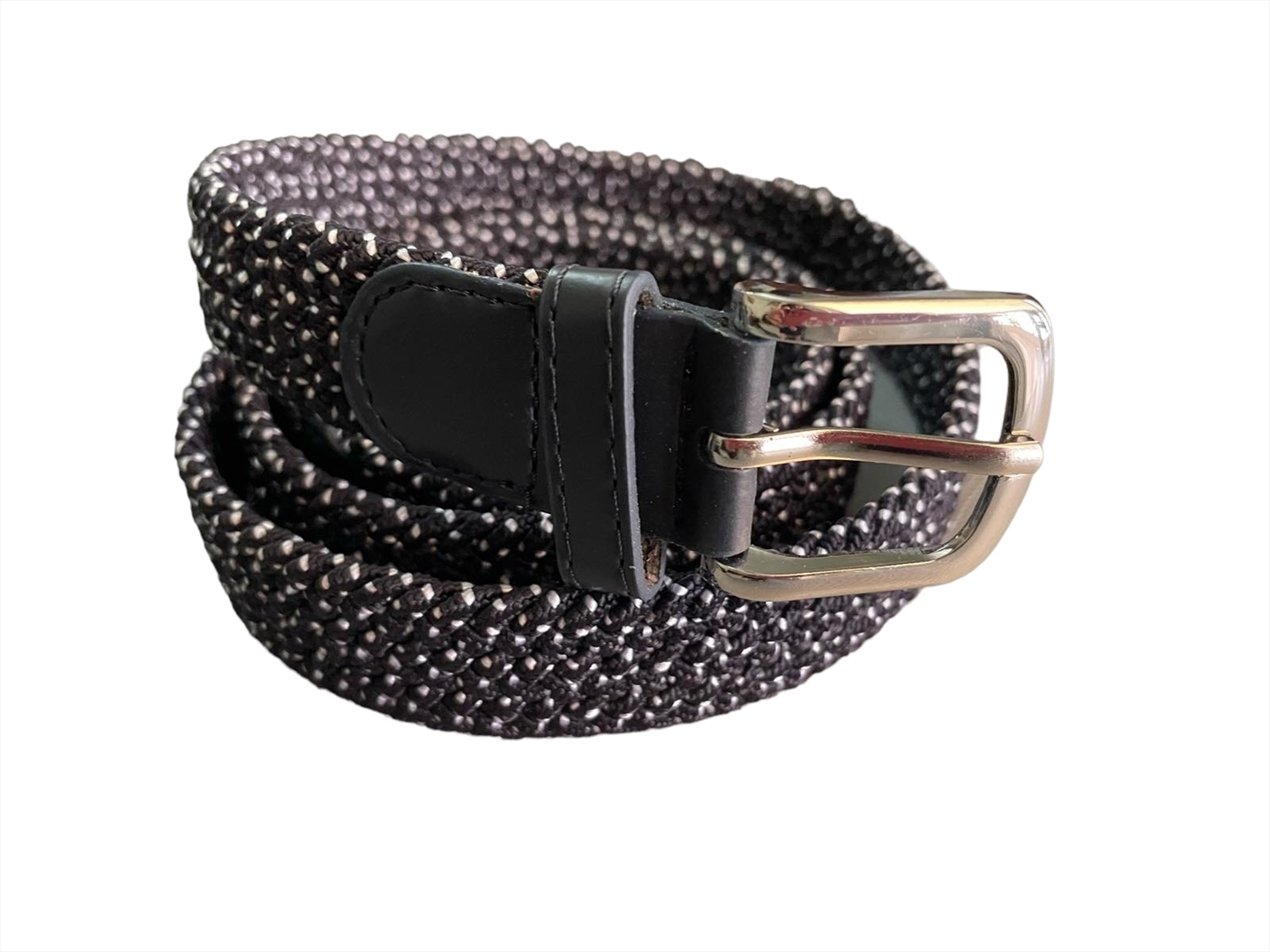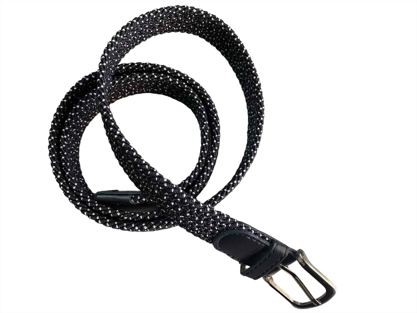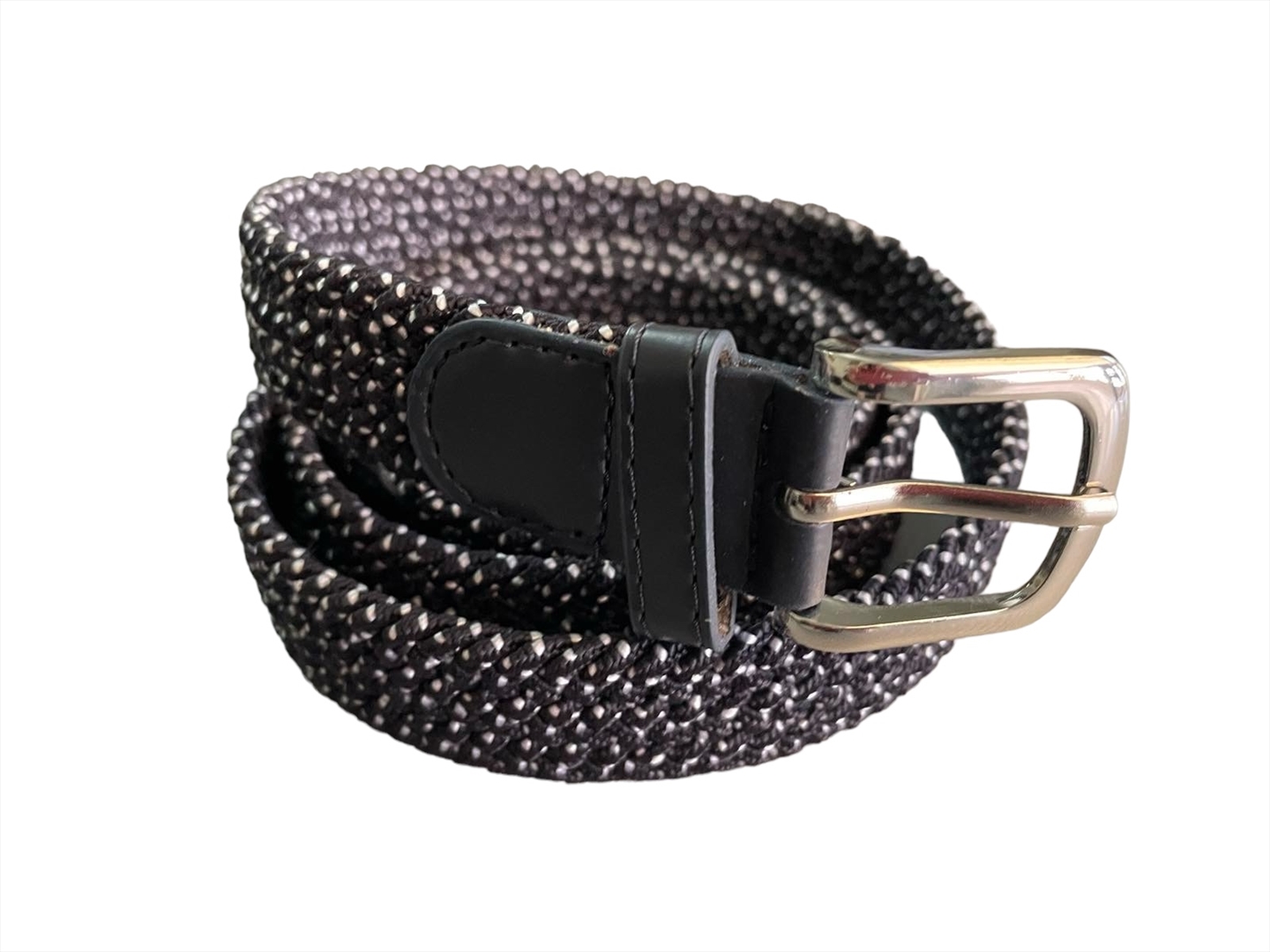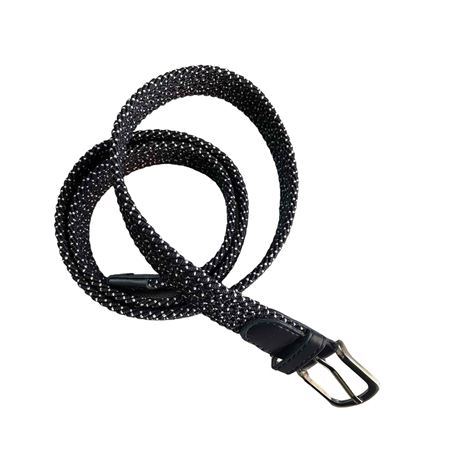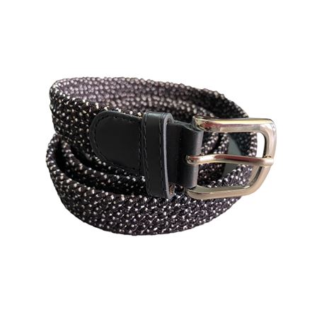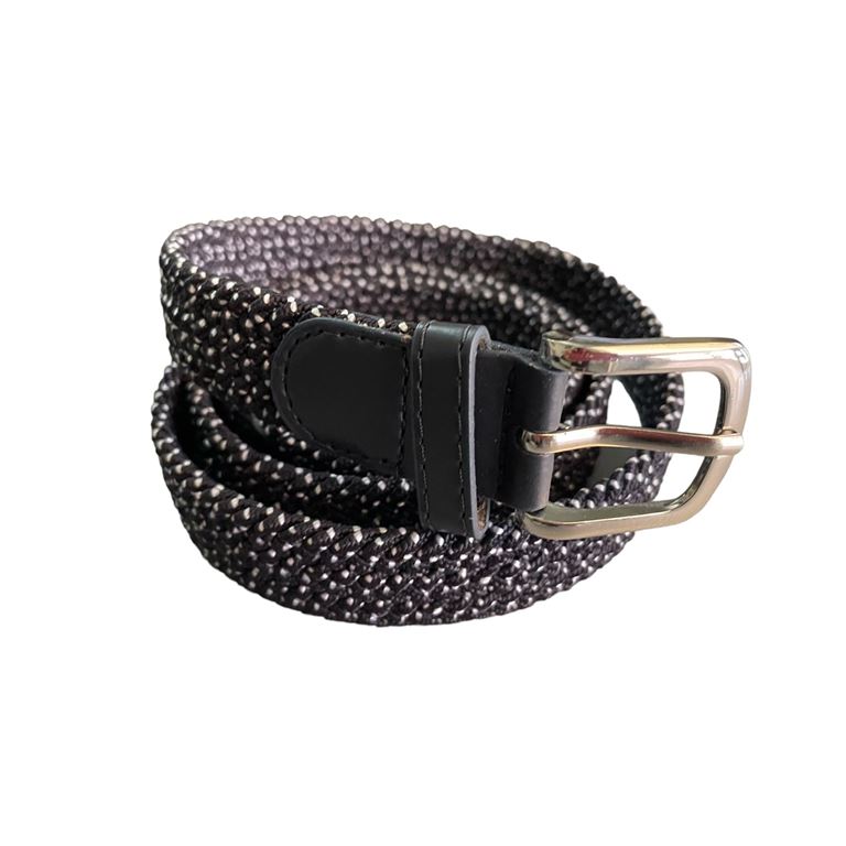 Ελαστική πλεκτή ζώνη από επιλεγμένο ύφασμα ένα απαραίτητο αξεσουάρ για εσάς.Δεν διαθέτει τρύπες και σφίγγει όσο θέλετε, με μεταλλική τετράγωνη αγκράφα και δέρμα στο κούμπωμα. Σύνθεση leather - fabric.