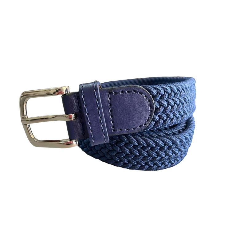 Ελαστική πλεκτή ζώνη από επιλεγμένο ύφασμα ένα απαραίτητο αξεσουάρ για εσάς.Δεν διαθέτει τρύπες και σφίγγει όσο θέλετε, με μεταλλική τετράγωνη αγκράφα και δέρμα στο κούμπωμα. Σύνθεση leather - fabric.