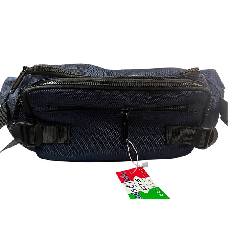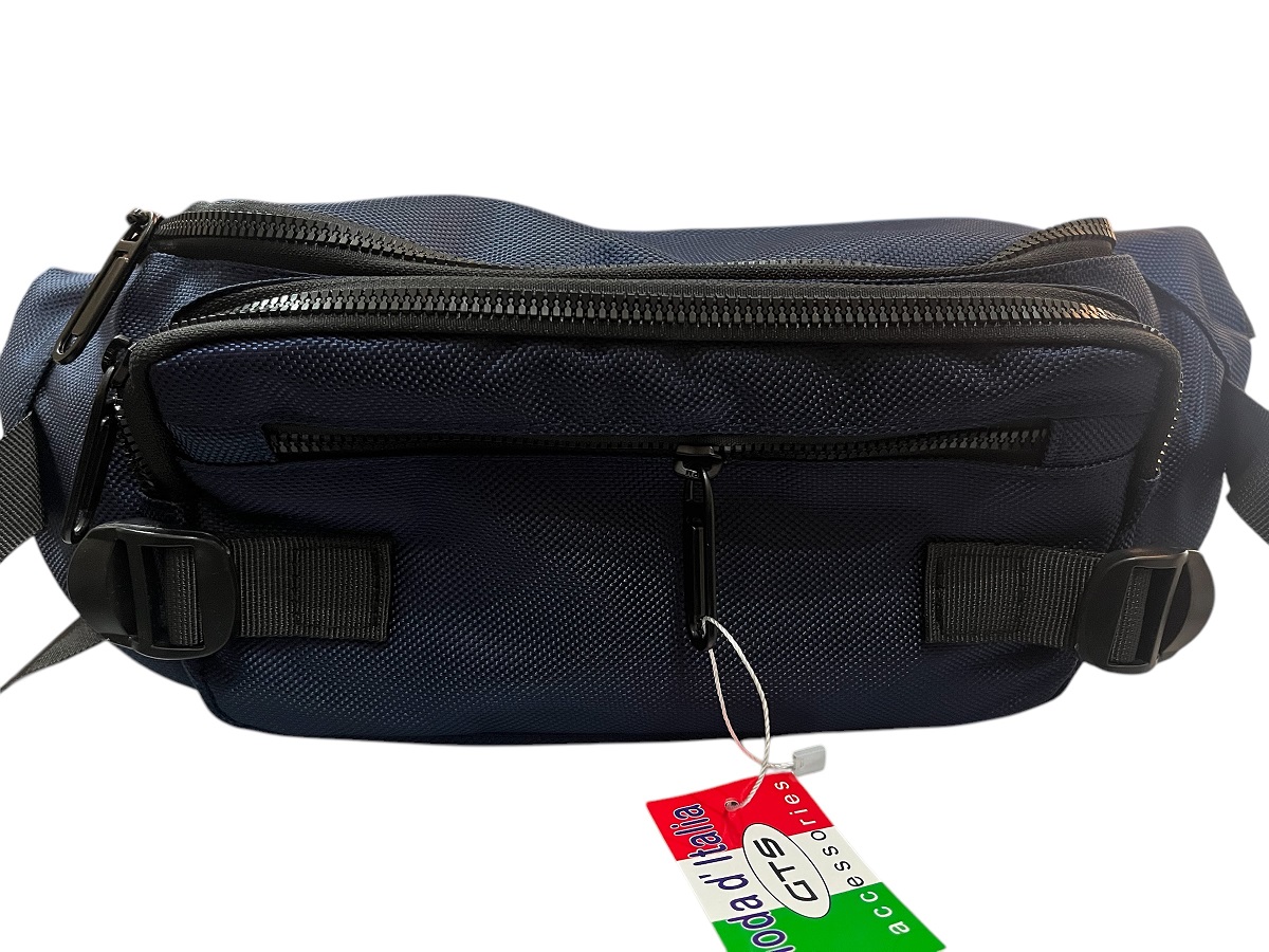 Τσαντάκι μέσης μεγάλο μεγέθους χρώματος μαύρο με διπλές ραφές, πλήρως φοδραρισμένο, με ρυθμιζόμενο ιμάντα προσαρμογής στη μέση, άνετο με τέλεια εφαρμογή πάνω σας .Το τσαντάκι διαθέτει 3 κεντρικές θήκες με φερμουάρ και 1 θήκη με φερμουάρ πίσω μέρος.