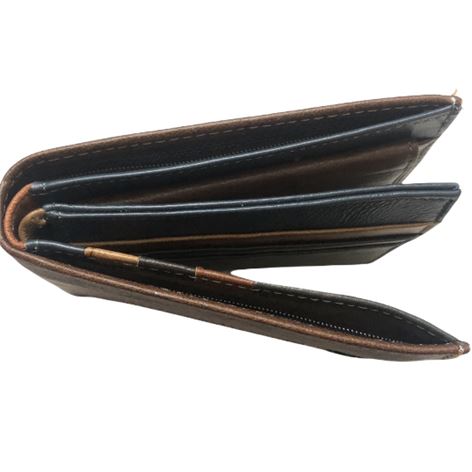 Δερμάτινο ανδρικό πορτοφόλι καφέ (ταμπά), υλικό Genuine leather ,εξαιρετικής ποιότητας μεγάλης αντοχής διαστάσεις μήκος (cm) 11,5 ύψος 9,5 πλάτος 2,5.Το πορτοφόλι διαθέτει ,1 θήκη για κέρματα,10 θήκες για κάρτες -ταυτότητα -δίπλωμα, 1 θήκη για χαρτονομίσματα 1 εσωτερική βαθιά θήκη με φερμουάρ επίσης διαθέτει 3 κρυφές θήκες.Είναι φοδραρισμένο μέσα-έξω.