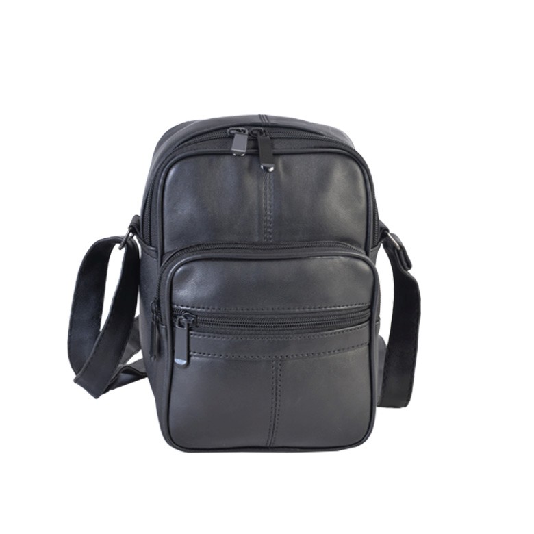 Δερμάτινο ανδρικό μαύρο τσαντάκι από δέρμα (sheep nappa) εξαιρετικής ποιότητας και αντοχής με πολύ μαλακή αίσθηση και βελούδινη λεία υφή κατάλληλο για καθημερινή χρήση και επαγγελματικά ραντεβού, χιαστί με ρυθμιζόμενο λουράκι και για τον ώμο .Διαστάσεις M x Y x Π (cm) 16 x 21 x 6 Το τσαντάκι διαθέτει 1 κεντρική θήκη με φερμουάρ και 2 zipper puller ,1 θήκη με φερμουάρ στο πίσω μέρος, 2 θήκες με φερμουάρ μπροστά, 1 εσωτερική θήκη με φερμουάρ, πλήρως φοδραρισμένο.