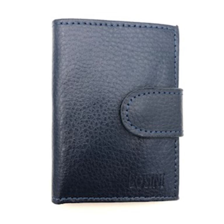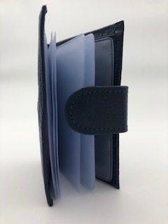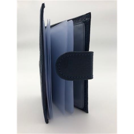 Θήκη από τεχνόδερμα χρώματος μπλε με κούμπωμα και εσωτερικά έχει 10 διαφάνειες για πιστωτικές κάρτες, έχει θήκη πορτοφολιού