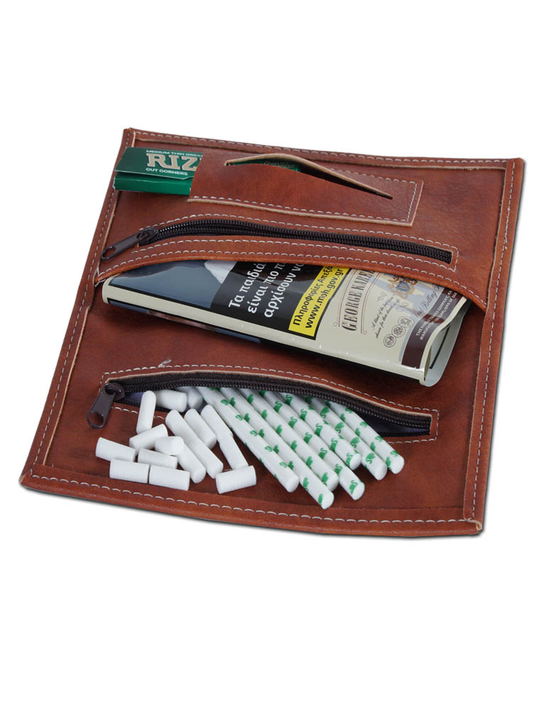 Καπνοθήκη μοντέρνα αρίστης ποιότητος τεχνόδερμα με εσωτερική επένδυση σιλικόνης για να διατηρείται ο καπνός φρέσκος χρώματος γκρι με γαζί περιμετρικά που χωράει το φακελάκι με τον καπνό και έχει θέση για χαρτάκια και φιλτράκια,με τέλεια εφαρμογή κλείνει με μαγνήτες και μία θήκη με φερμούαρ στο πίσω μέρος .Διαστάσεις M x Y x Π (cm) 16,5 x 8,5 x 1.