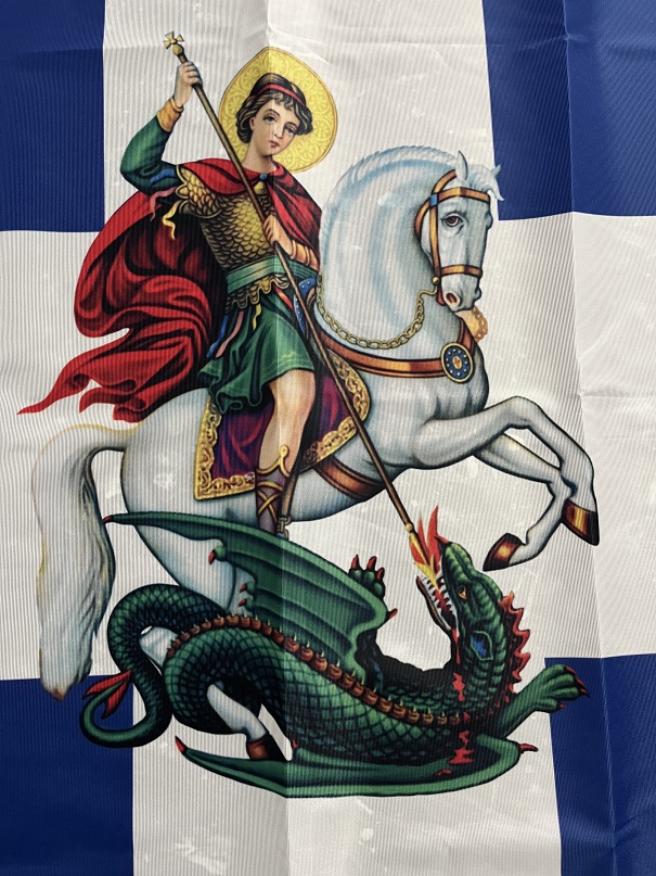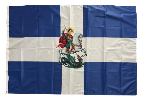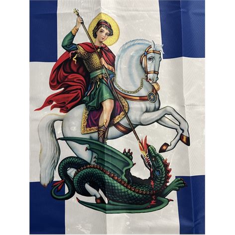 Ελληνική σημαία με Σταυρό και τον Άγιο Γεώργιο 95x150cm (Polyester)