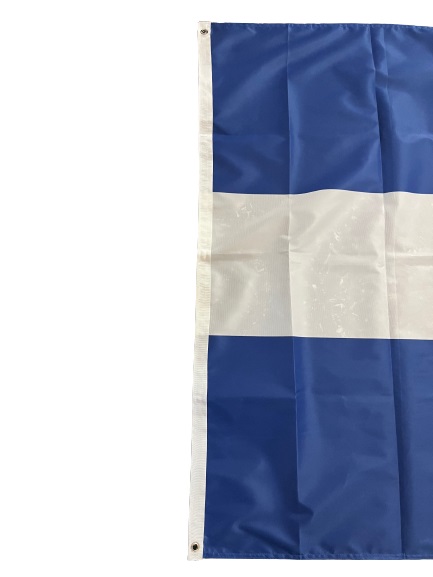Ιστορική Ελληνική σημαία με τον Άγιο Γεώργιο, αρίστης ποιότητος με σημαιόπανο τριπλής πλέξης 120gr , διπλές ραφές με υψηλής αντοχής κλωστές, οικολογικά ανεξίτηλα χρώματα με ανοξείδωτα τρουκς και με τελείωμα σε ειδικό φούρνο ατμίσματος ώστε να είναι αμετάβλητη στο χρόνο. Αντιανεμικό πολυεστερικό υλικό με αντοχή 120km φορτίο ανέμου.