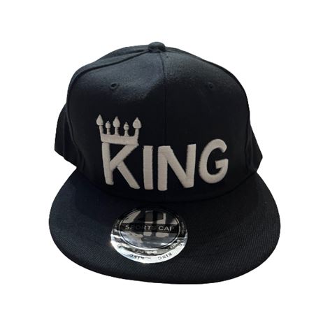 Καπέλο - jokey King μαύρο με πολύ καλής ποιότητας Υλικά και αντοχή στο χρόνο, το σχέδιο είναι με κέντημα .Με ρυθμιζόμενο κλιπ στο πίσω μέρος.