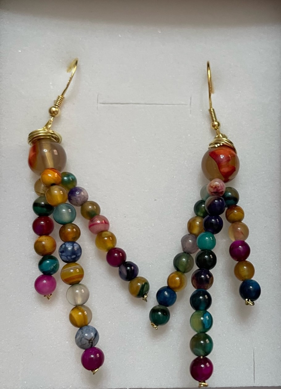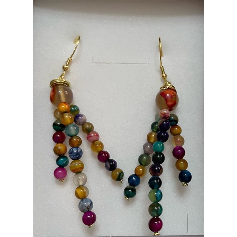 Σκουλαρίκια σετ με Ημιπολύτιμους Λίθους (Αχάτης) πολύχρωμα
