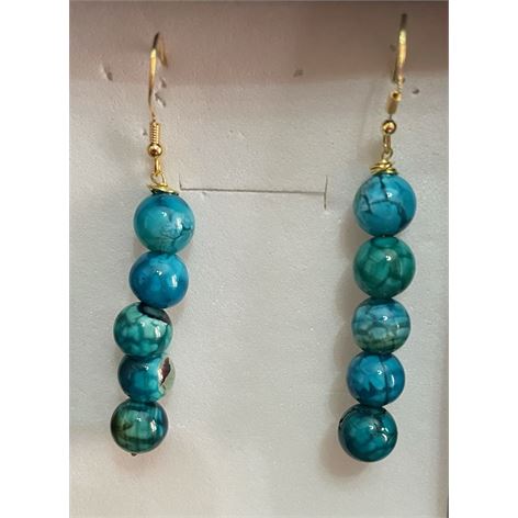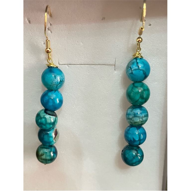 Σκουλαρίκια σετ με Ημιπολύτιμους Λίθους (Aχάτης) μπλε με ασημένιο επιχρυσωμένο κρίκο