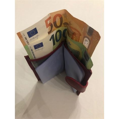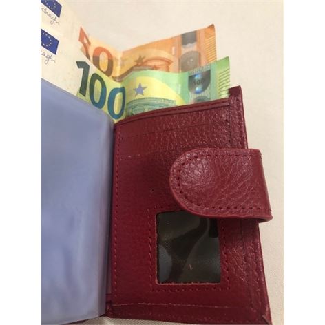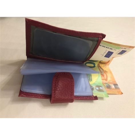Θήκη από τεχνόδερμα χρώματος κόκκινο με κούμπωμα και εσωτερικά έχει 10 διαφάνειες για πιστωτικές κάρτες, έχει θήκη πορτοφολιού