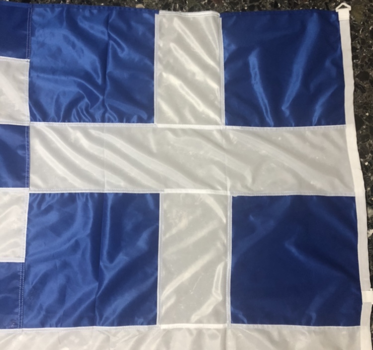 Σημαία Ελληνική σε διάσταση 120 x 200cm από υψηλής ποιότητος ύφασμα χειροποίητη, ραμμένη στο χέρι κομμάτι-κομμάτι με διπλές ραφές, είναι προϊόν μικρής Ελληνικής βιοτεχνίας με παράδοση εμπειρία και τέχνη ως προς το αποτέλεσμα. Είναι φοδραρισμένη τα χρώματα της ανεξίτηλα και ραμμένη με ανθεκτικές Ακρυλικές κλωστές. Έχει αντοχή στις καιρικές συνθήκες Χειμώνα-Καλοκαίρι και στα φορτία ανέμου.Διαθέτει ισχυρούς πλαστικούς κρίκους για ύψωση και δέσιμο σε Ιστό.