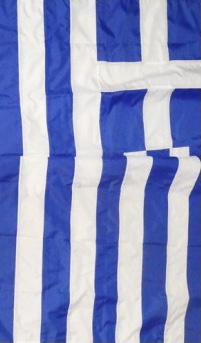 Σημαία Ελληνική Ραφτή σε διάσταση 95 x 150 cm, 100% Βαμβακερή από υψηλής ποιότητος ύφασμα χειροποίητη, ραμμένη στο χέρι κομμάτι-κομμάτι με διπλές ραφές, είναι προϊόν μικρής Ελληνικής βιοτεχνίας με παράδοση εμπειρία και τέχνη ως προς το αποτέλεσμα. Είναι φοδραρισμένη τα χρώματα της ανεξίτηλα και ραμμένη με ανθεκτικές Ακρυλικές κλωστές. Έχει αντοχή στις καιρικές συνθήκες Χειμώνα-Καλοκαίρι και στα φορτία ανέμου. Διαθέτει ισχυρούς πλαστικούς κρίκους για ύψωση και δέσιμο σε Ιστό.