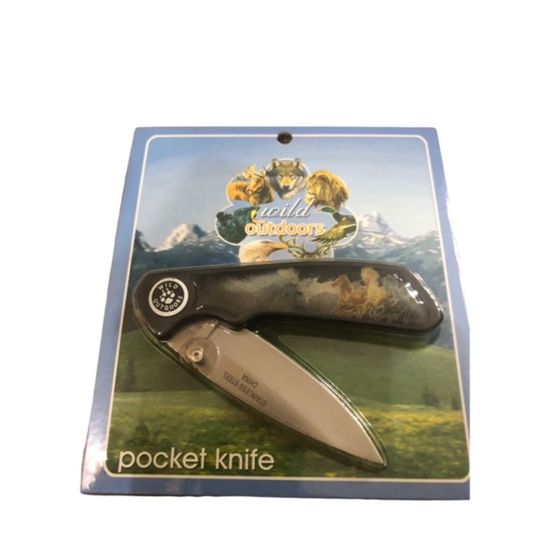 Σουγιάς mini τσέπης από ανοξείδωτο ατσάλι με πολύ κοφτερή λεπίδα και με αναπαράσταση άλογα, κατάλληλο αξεσουάρ για κυνηγούς ή για δώρο.Σφραγισμένα στο μπλιστερ τους.
