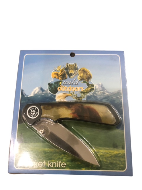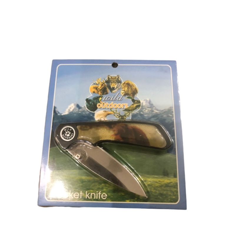 Σουγιάς mini τσέπης από ανοξείδωτο ατσάλι με πολύ κοφτερή λεπίδα και με αναπαράσταση αρκούδα, κατάλληλο αξεσουάρ για κυνηγούς ή για δώρο.Σφραγισμένα στο μπλιστερ τους.