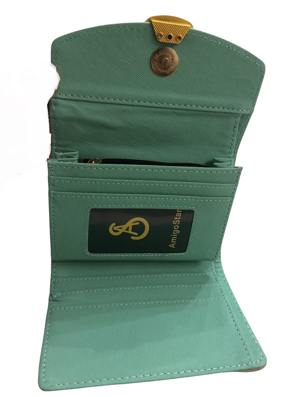 Το πορτοφόλι κλείνει με μαγνητικό κούμπωμα και φέρει μεταλλικό χρυσό διακοσμητικό στοιχείο στην μπροστινή όψη.