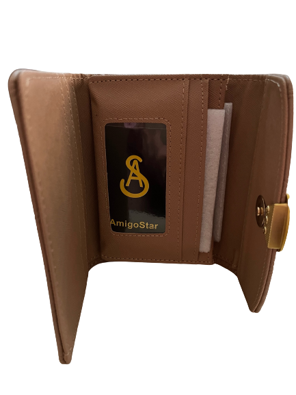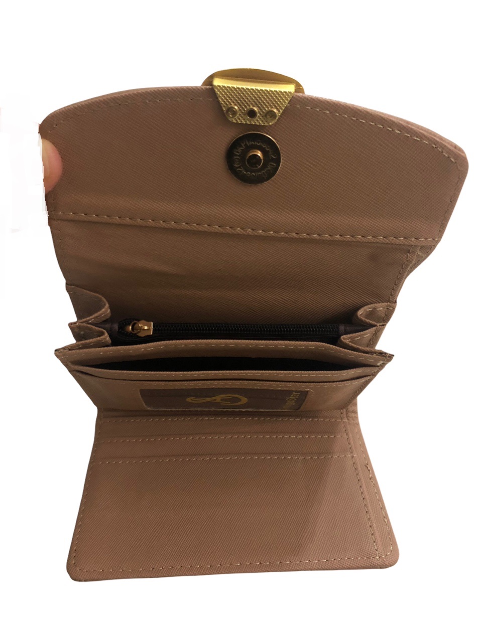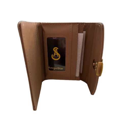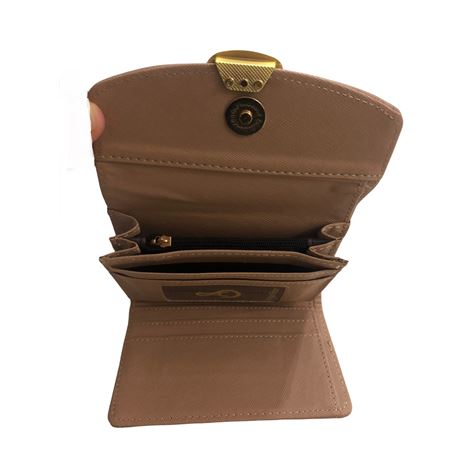 Το πορτοφόλι κλείνει με μαγνητικό κούμπωμα και φέρει μεταλλικό χρυσό διακοσμητικό στοιχείο στην μπροστινή όψη.