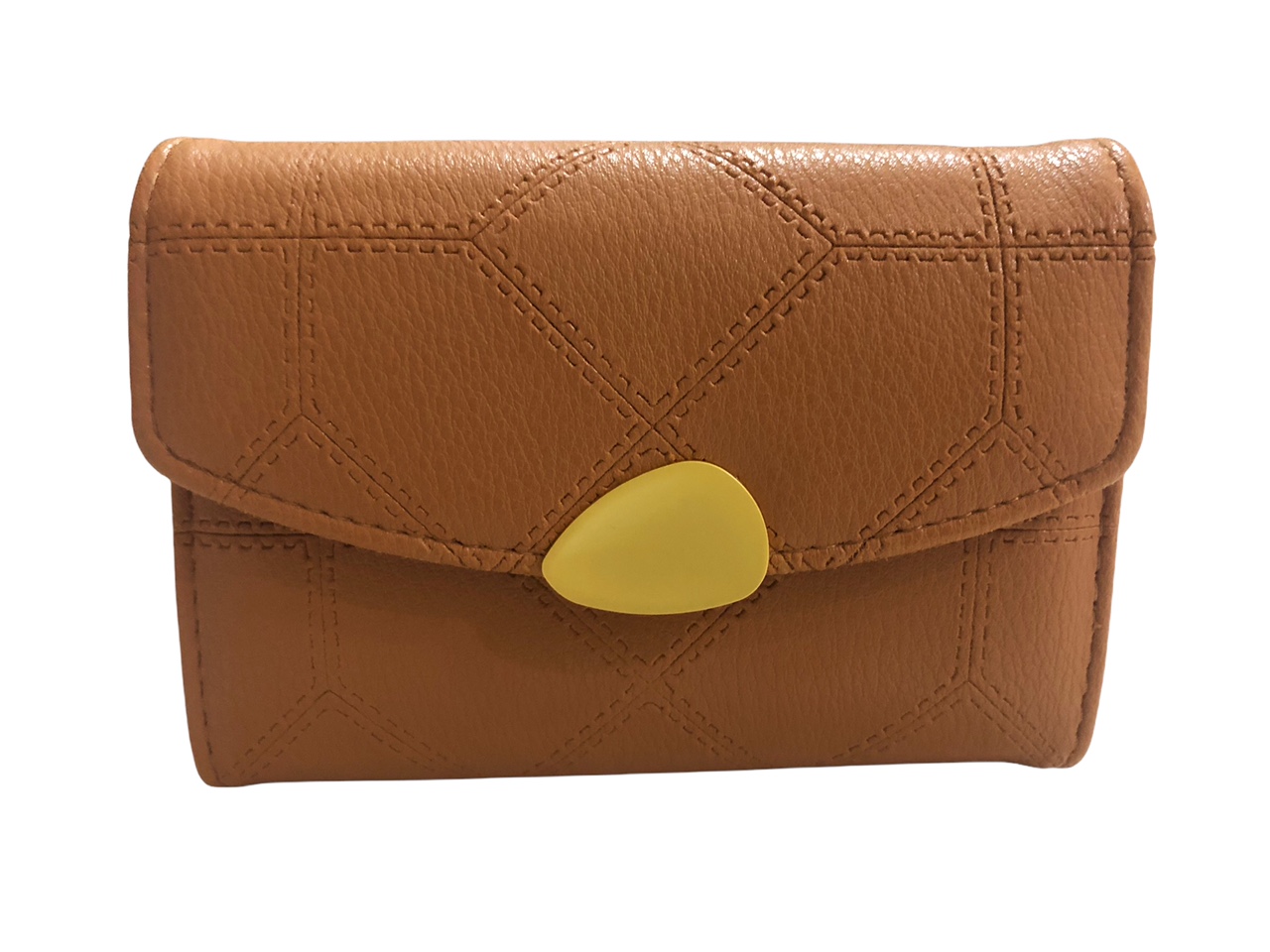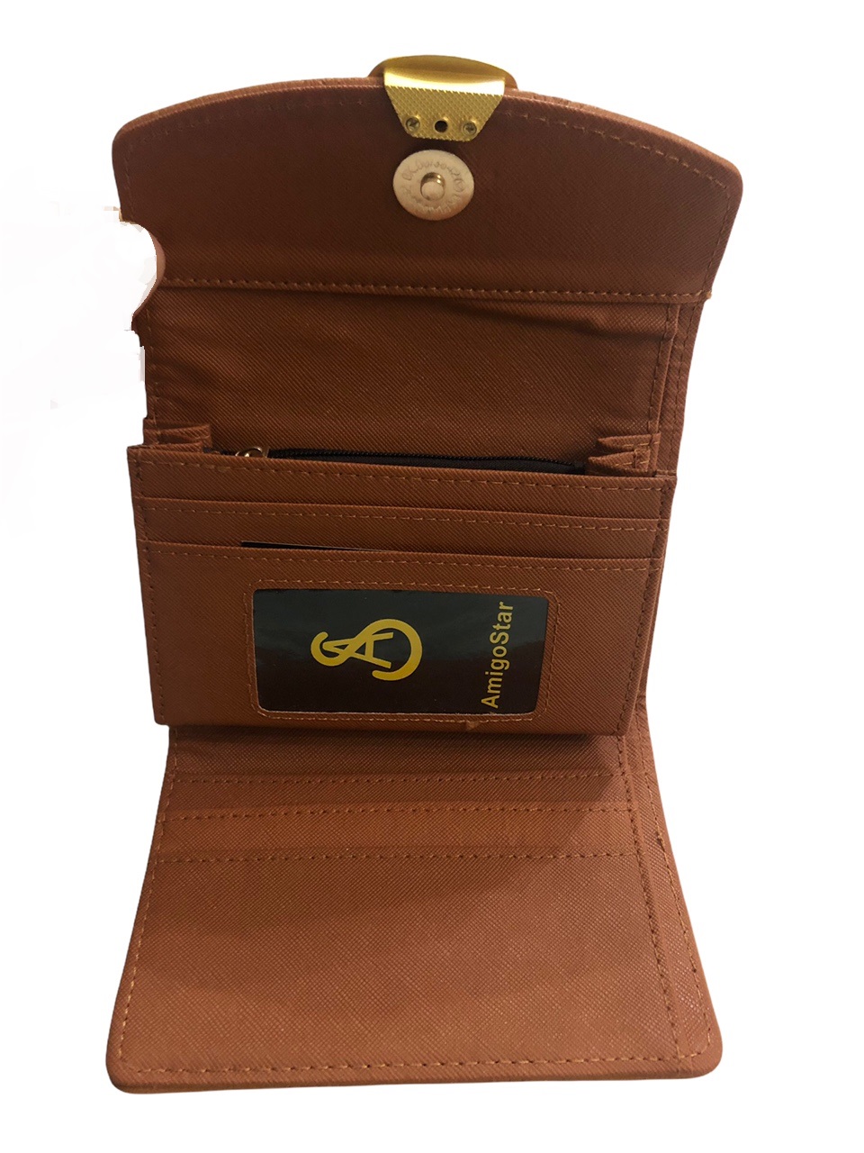 Το πορτοφόλι κλείνει με μαγνητικό κούμπωμα και φέρει μεταλλικό χρυσό διακοσμητικό στοιχείο στην μπροστινή όψη.
