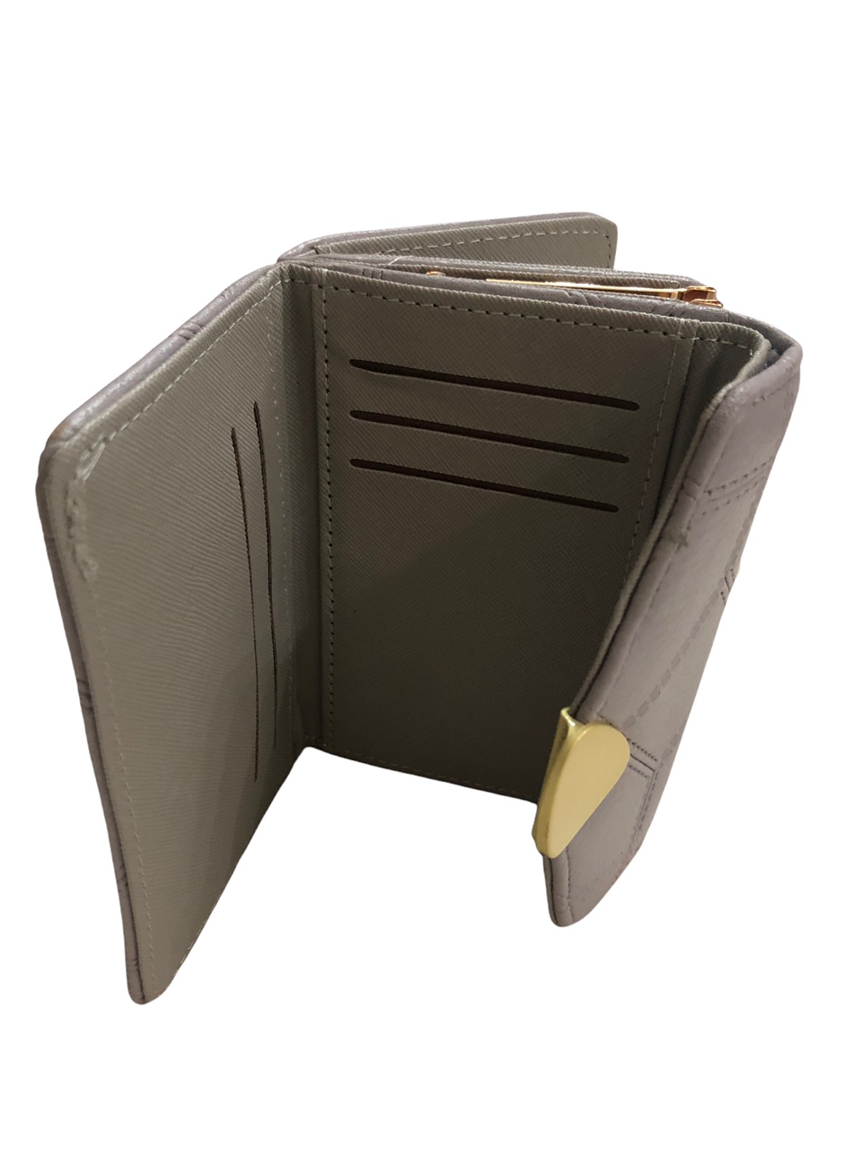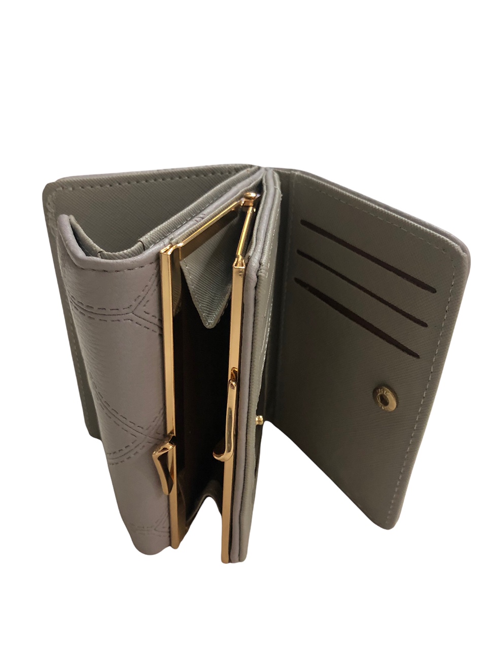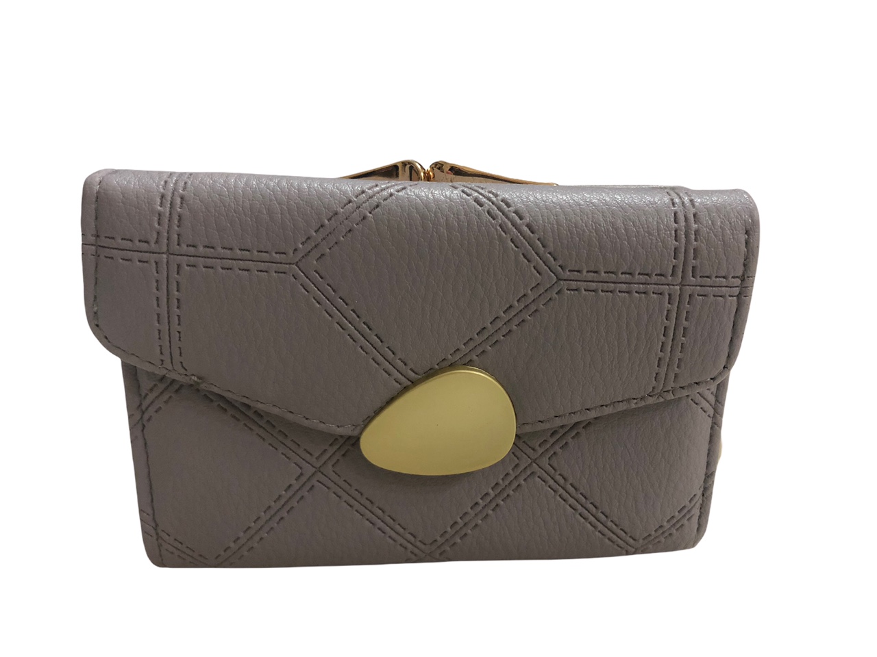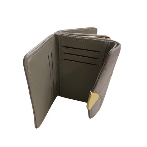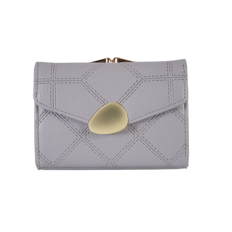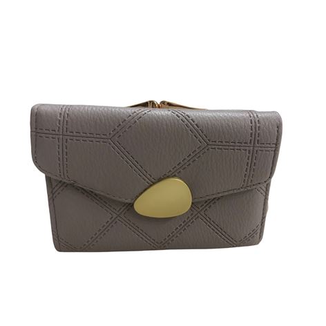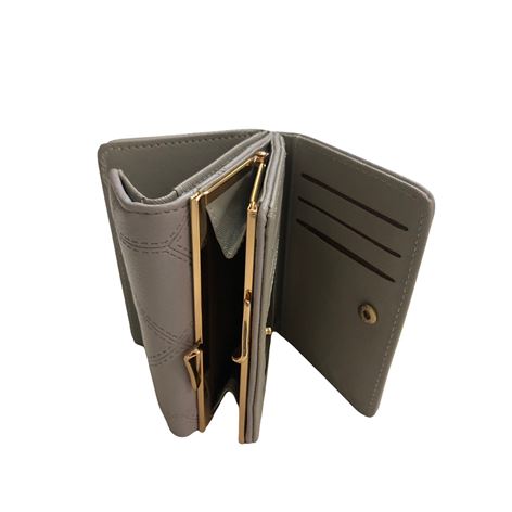 Γυναικείο πορτοφόλι από αναγεννημένο δέρμα με χρυσό κούμπωμα χωράει ταυτότητα χρώμα γκρι
