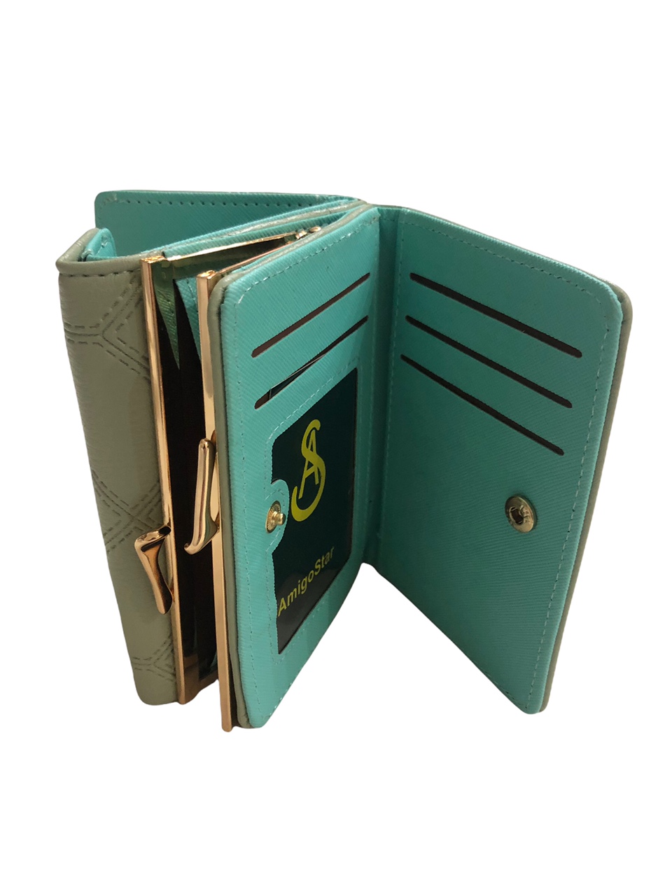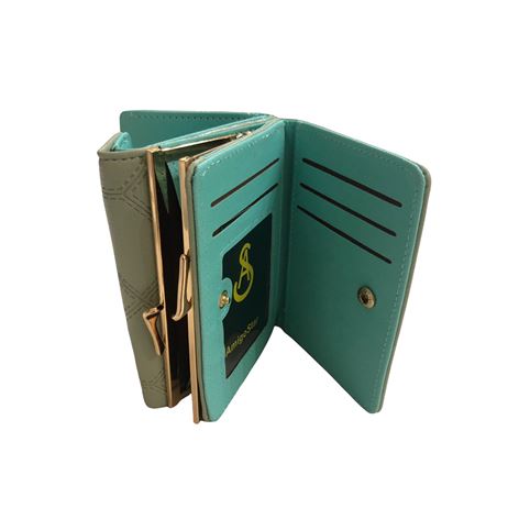 Γυναικείο πρακτικό πορτοφόλι από αναγεννημένο δέρμα το οποίο φέρει 11 θήκες για κάρτες, 1 θήκη με παράθυρο για φωτογραφία,1 βαθιά κεντρική για χαρτονομίσματα, 1 θήκη με κλιπ για τα κέρματα σας και 2 κρυφές θήκες.