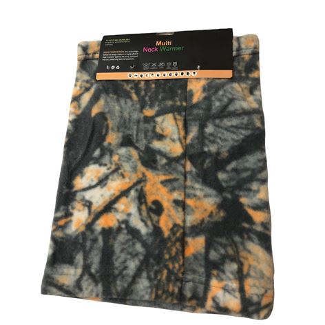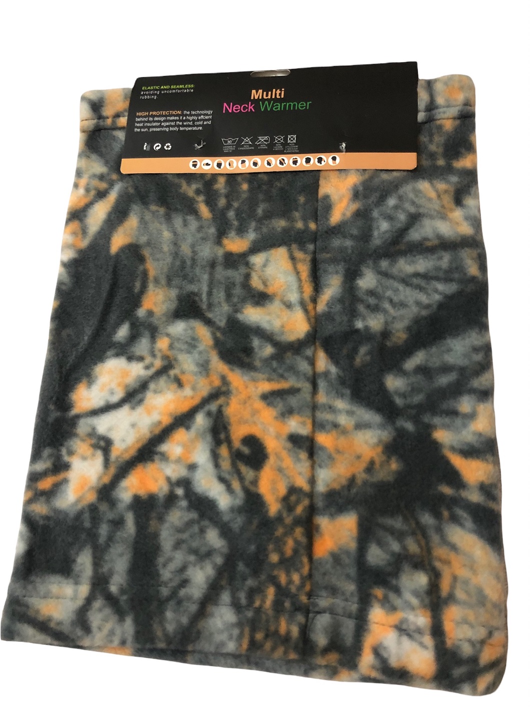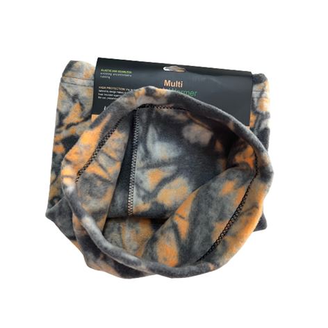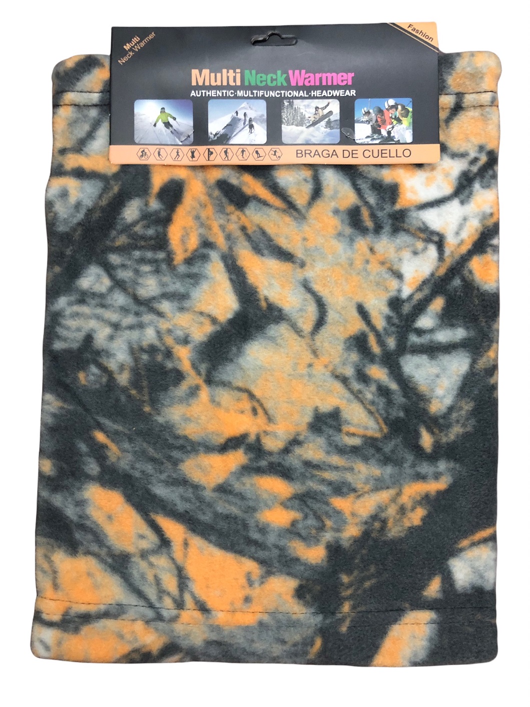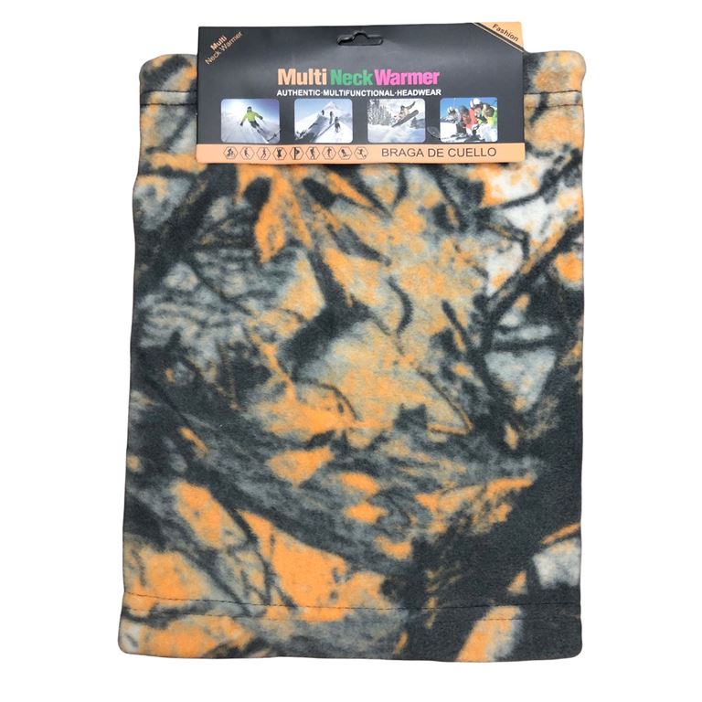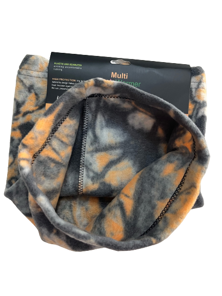 Λαιμουδιέρα fleece χρώματος πορτοκαλί με σχέδια η οποία προστατεύει το λαιμό σας και το πρόσωπο από αντίξοες συνθήκες, το κρύο, τον αέρα και την βροχή. Με ρυθμιζόμενο κορδόνι το οποίο την μετατρέπει σε σκούφο.