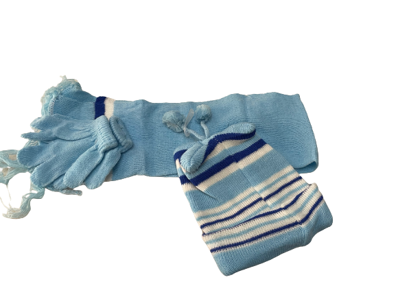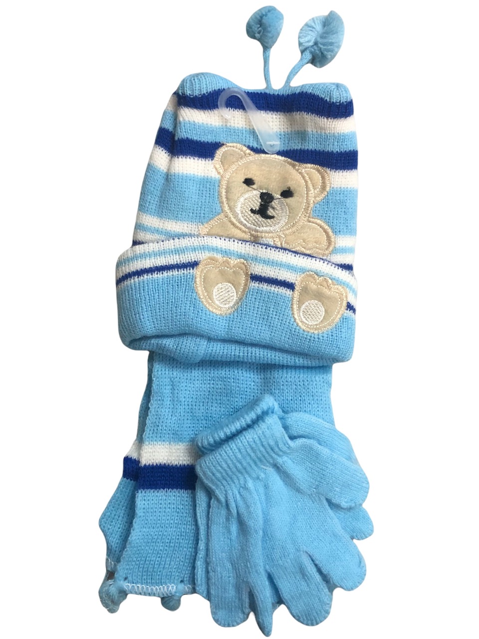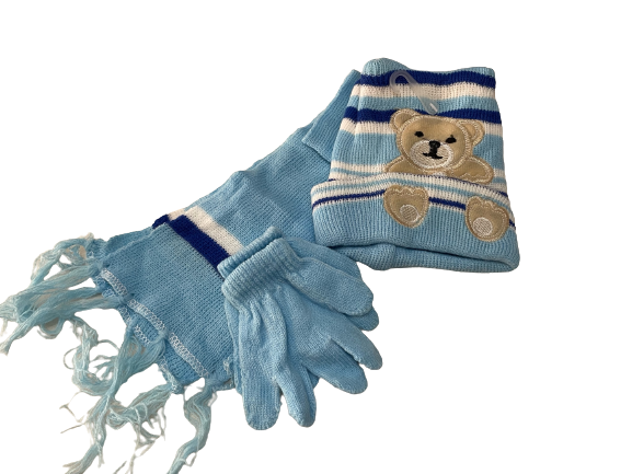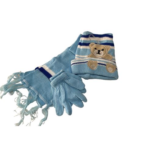 Σετ σκούφος κασκόλ γάντια γαλάζιο με σχέδιο αρκουδάκι.