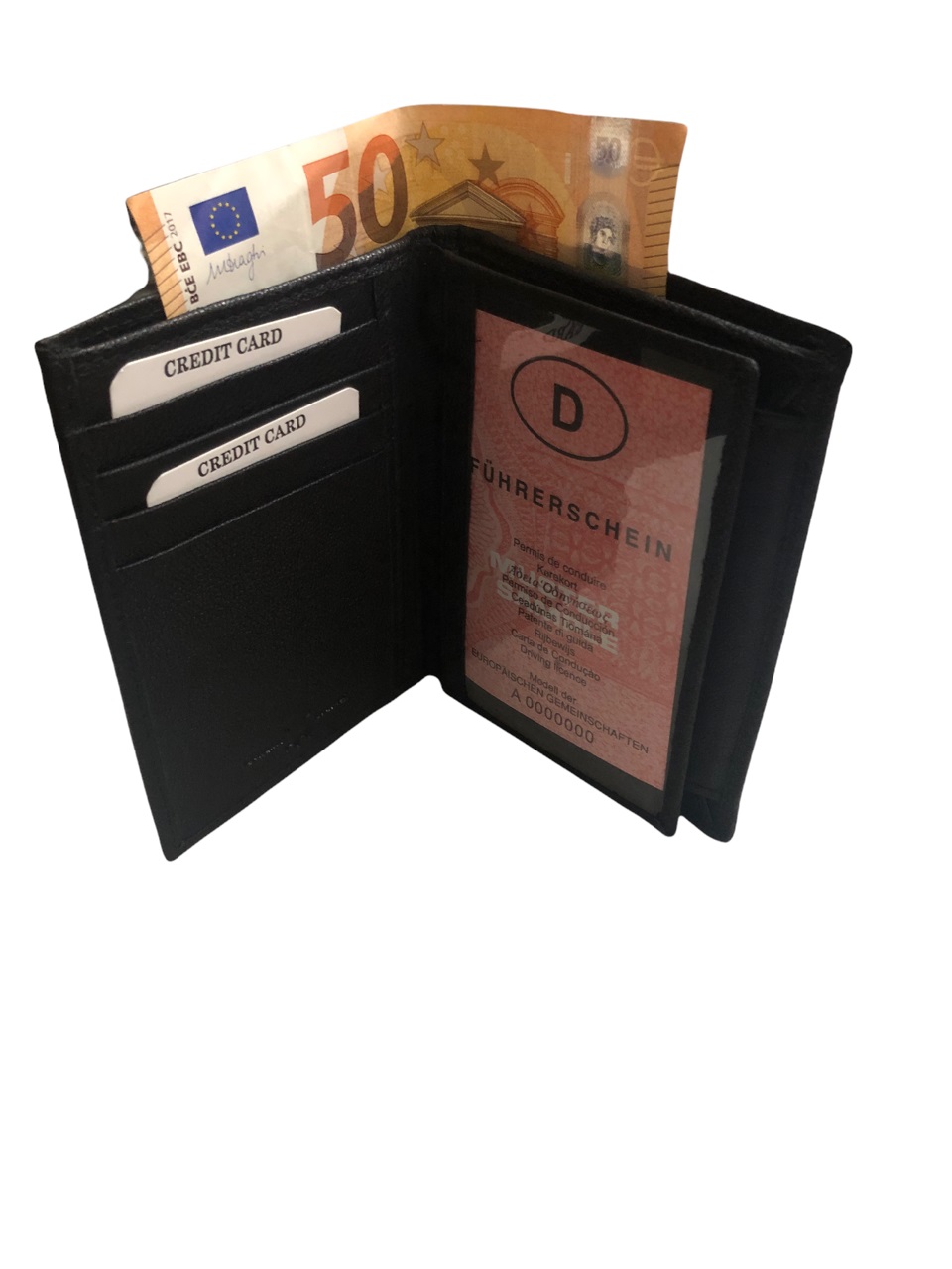 Ανδρικό πορτοφόλι κάθετο 100% real leather μαύρο χρώμα χωράει και ταυτότητα