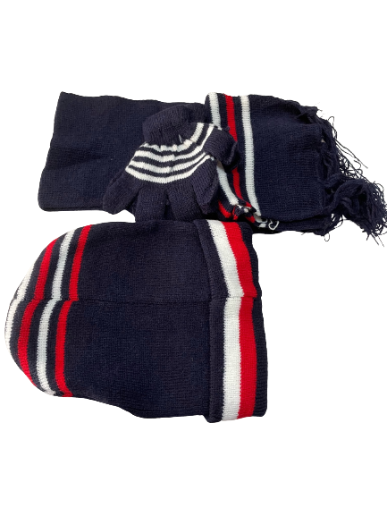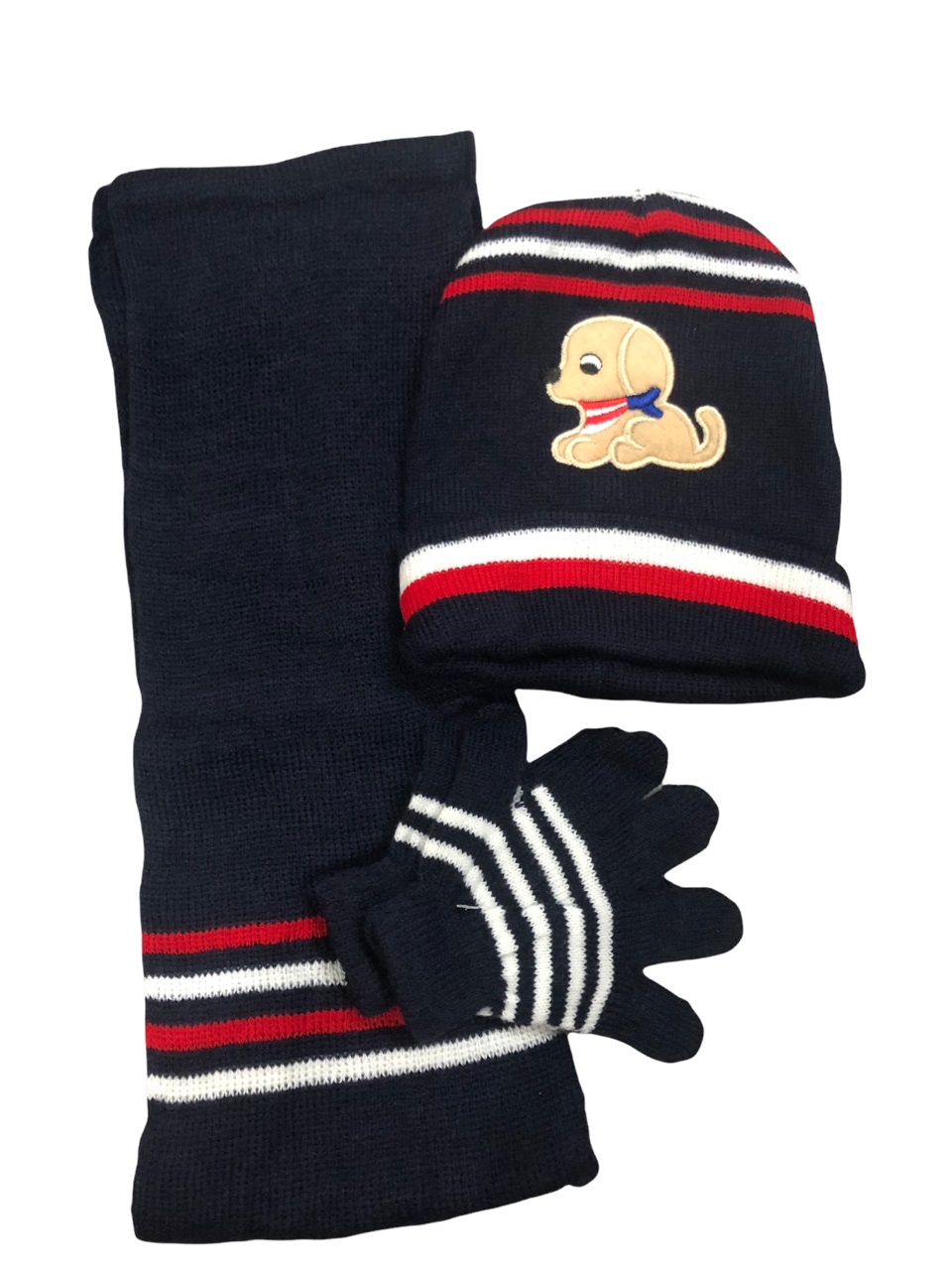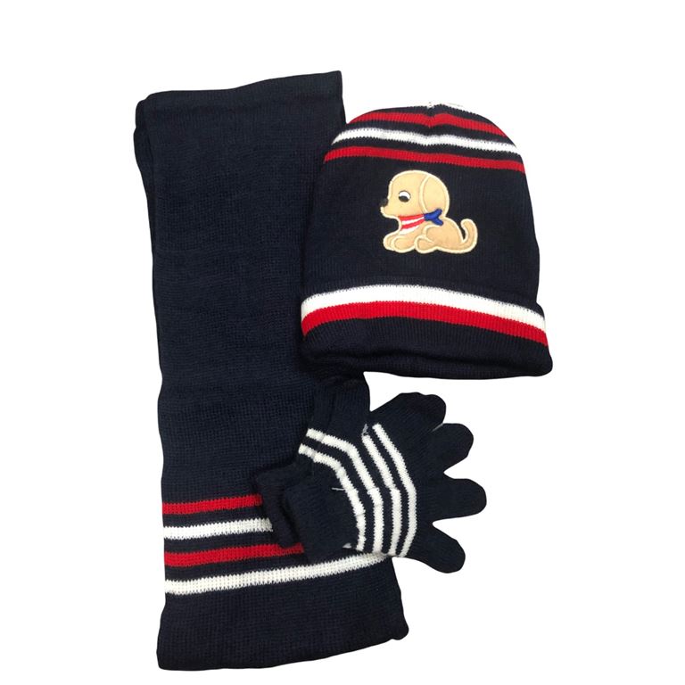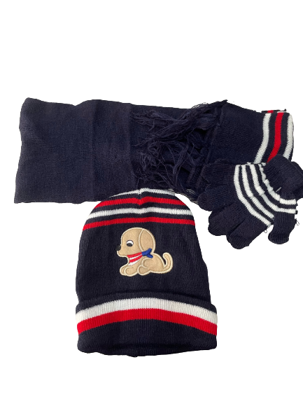 Σετ παιδικό (Γάντια, κασκόλ,σκούφο) πλεκτό μαύρο χρώμα με σχέδιο σκυλάκι.