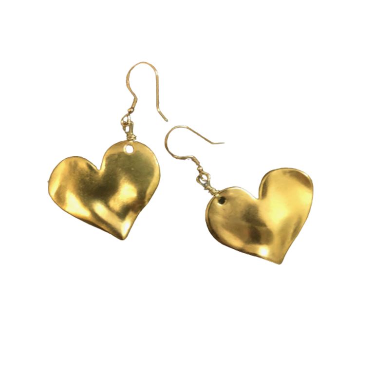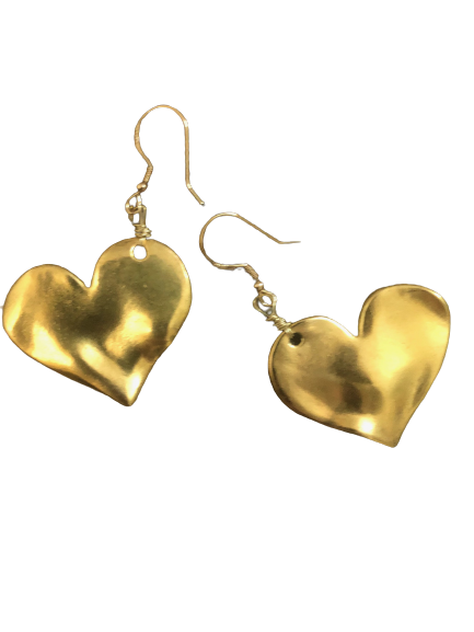 Σκουλαρίκια σετ 2 τεμάχια χειροποίητα με ασημένιο 925 επιχρυσωμένο κρίκο για το αυτί με σχέδιο σφυρήλατη μεταλλική καρδιά σε χρυσό χρώμα.