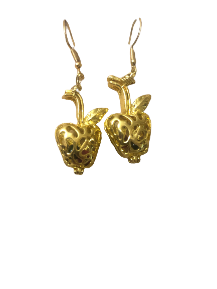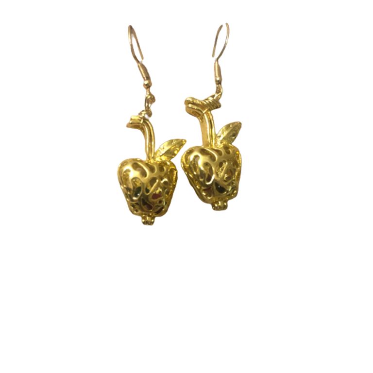 Σκουλαρίκια σετ 2 τεμάχια χειροποίητα με ασημένιο 925 επιχρυσωμένο κρίκο για το αυτί με σχέδιο μήλο σε χρυσό χρώμα το οποίο περιέχει 2 ημιπολύτιμους λίθους (αχάτη).