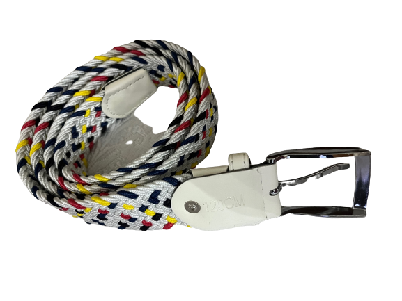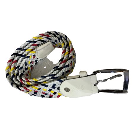 Ελαστική πλεκτή ζώνη από επιλεγμένο ύφασμα ένα απαραίτητο αξεσουάρ για εσάς.Δεν διαθέτει τρύπες και σφίγγει όσο θέλετε, με μεταλλική τετράγωνη αγκράφα και δέρμα στο κούμπωμα. Σύνθεση leather - fabric.