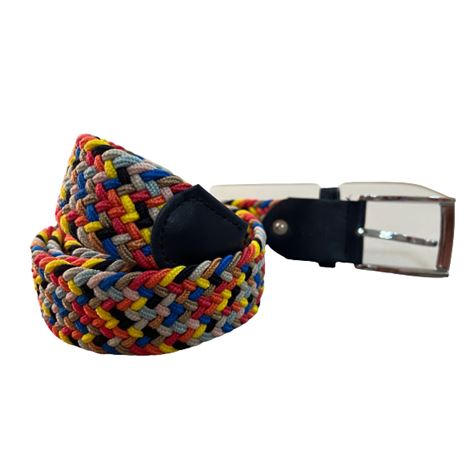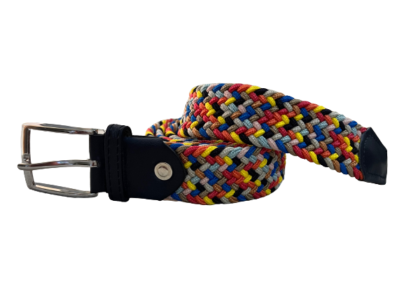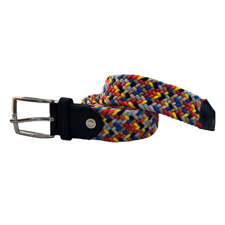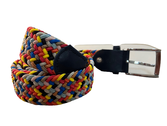 Ελαστική πλεκτή ζώνη από επιλεγμένο ύφασμα ένα απαραίτητο αξεσουάρ για εσάς.Δεν διαθέτει τρύπες και σφίγγει όσο θέλετε, με μεταλλική τετράγωνη αγκράφα και δέρμα στο κούμπωμα. Σύνθεση leather - fabric.