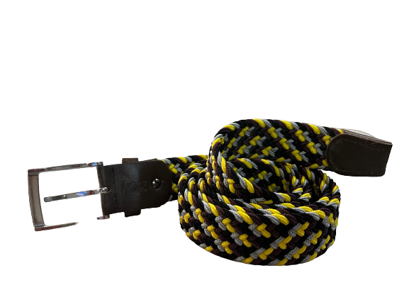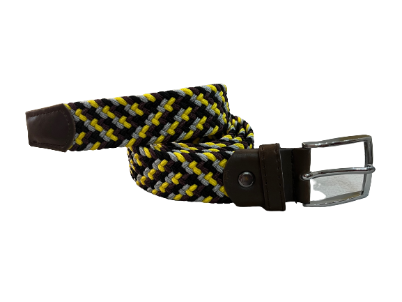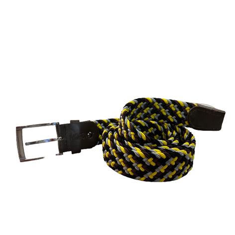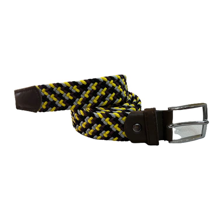 Ελαστική πλεκτή ζώνη από επιλεγμένο ύφασμα ένα απαραίτητο αξεσουάρ για εσάς.Δεν διαθέτει τρύπες και σφίγγει όσο θέλετε, με μεταλλική τετράγωνη αγκράφα και δέρμα στο κούμπωμα. Σύνθεση leather - fabric.