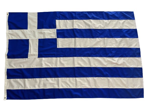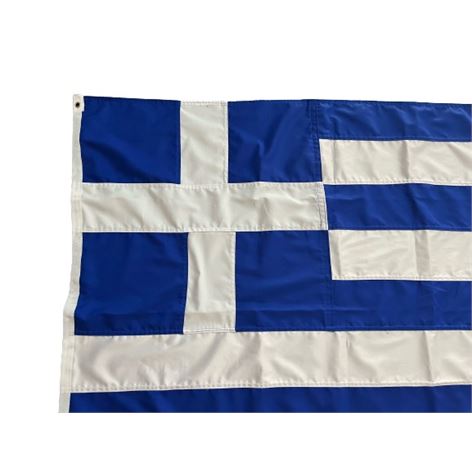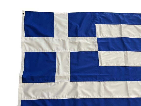 Ελληνική σημαία 150x100cm ραφτή χειροποίητη καραβόπανο με μεγάλη ανθεκτικότητα στα μεγάλα φορτία ανέμου, γαζωτή κομμάτι-κομμάτι με επιπλέον ραφές. Τα χρώματα της είναι ανεξίτηλα και δεν αλλοιώνονται με τις καιρικές συνθήκες. Προϊόν από μικρή Ελληνική βιοτεχνία με παράδοση εμπειρία και τέχνη ως προς το αποτέλεσμα. Διατίθεται με ισχυρούς μασίφ πλαστικούς κρίκους ή με μεταλλικούς κρίκους (μπουντούζια).