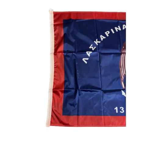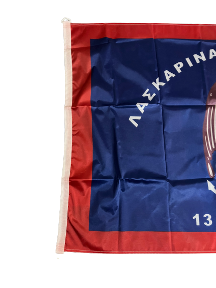 Ιστορική σημαία, αρίστης ποιότητος με σημαιόπανο τριπλής πλέξης 120gr , διπλές ραφές με υψηλής αντοχής κλωστές, οικολογικά ανεξίτηλα χρώματα με πλαστικούς μασίφ κρίκους και με τελείωμα σε ειδικό φούρνο ατμίσματος ώστε να είναι αμετάβλητη στο χρόνο. Αντιανεμικό πολυεστερικό υλικό με αντοχή 120km φορτίο ανέμου.