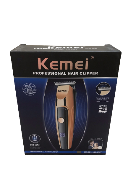 Κουρευτική μηχανή της εταιρίας Kemei, κατάλληλη για χρήση σε περιοχές όπως τα μαλλιά, τα γενιά και το σώμα. Λειτουργεί με μπαταρία.