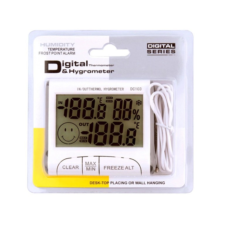 Μετεωρολογικός Σταθμός ψηφιακός με ένδειξη θερμοκρασίας εσωτερικού-εξωτερικού χώρου, ένδειξη υγρασίας εσωτερικού χώρου, επιλογή θερμοκρασίας 0C / 0F, διαθέτει ψηφιακό ρολόι - ξυπνητήρι, διαθέτει μαγνήτη για μεταλλική επιφάνεια και βάση για το γραφείο σας,περιλαμβάνει βύσμα με καλώδιο προέκτασης για τοποθέτηση στον εξωτερικό χώρο σας για μέτρηση της εξωτερικής θερμοκρασίας,μεγάλη LCD οθόνη 2,9',μέτρηση ακριβείας.Μετρήσεις εσωτερικού χώρου απο -10C έως +50C (-14'F - +122'F)Μετρήσεις εξωτερικού χώρου απο -50C έως +90C (-58'F - +194'F).Υλικό κατασκευής ανθεκτικό ABS, τροφοδοσία 1 x1,5V AAA μπαταρία περιλαμβάνετε στην συσκευασία μαζί με εγχειρίδιο χρήσης.