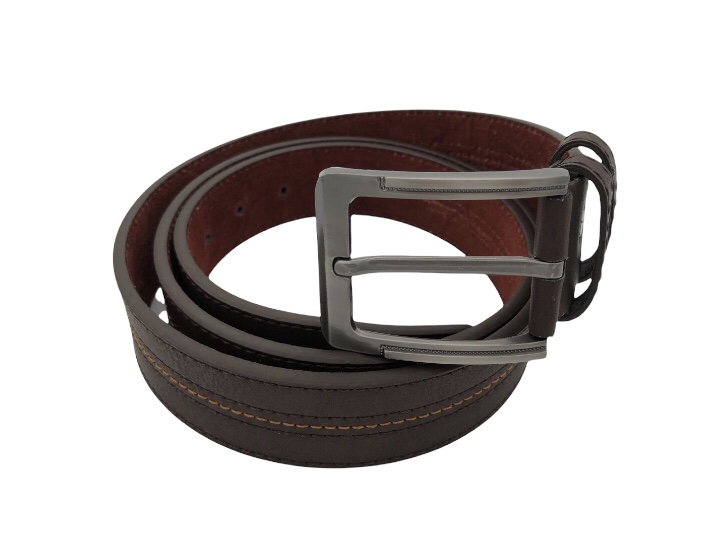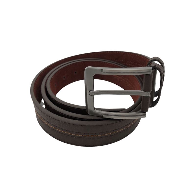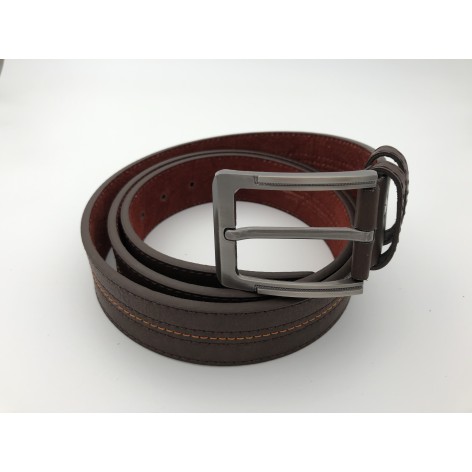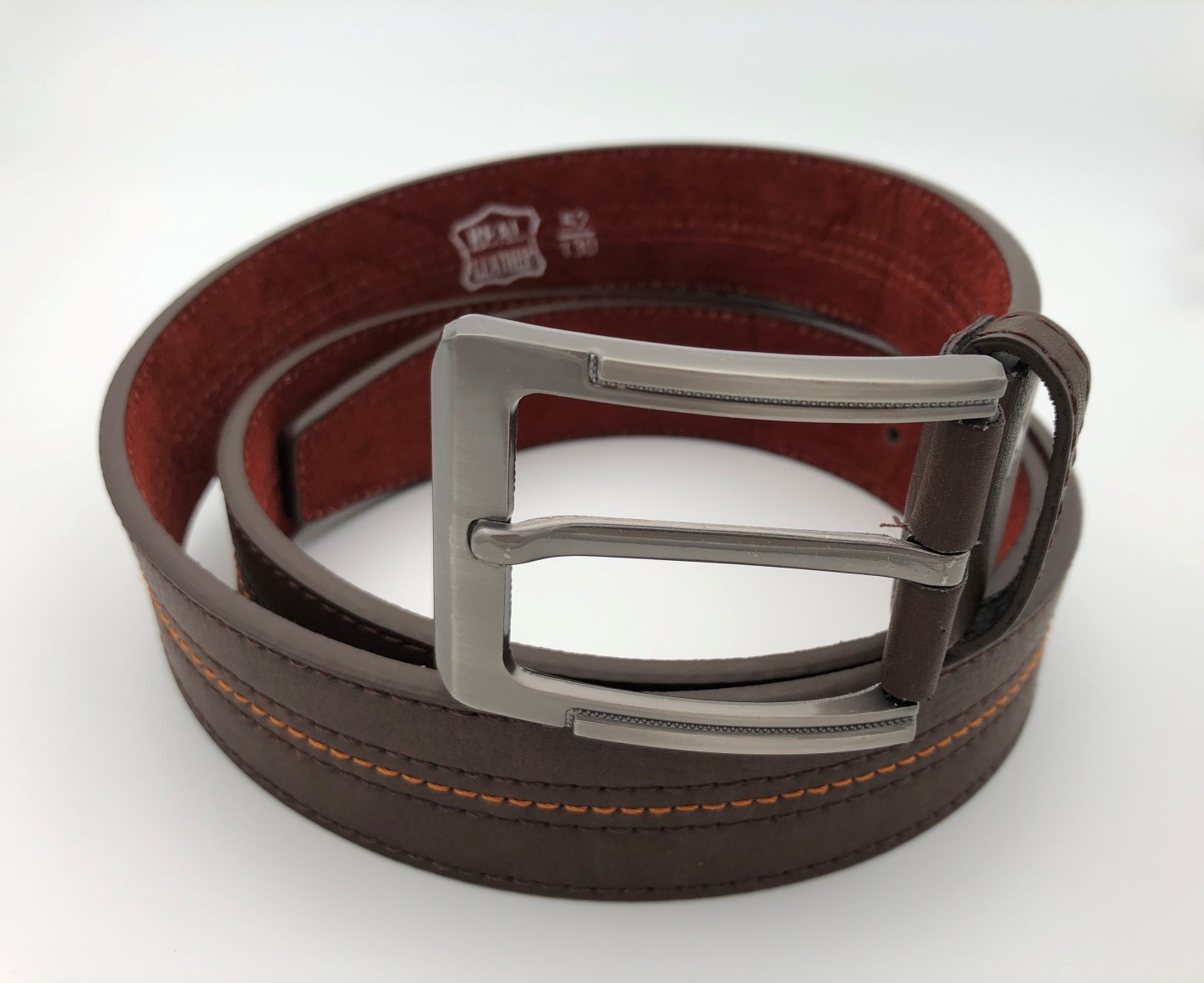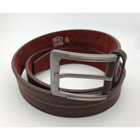 Ανδρική δερμάτινη ζώνη καφέ με πορτοκαλί γαζί (4cm)
