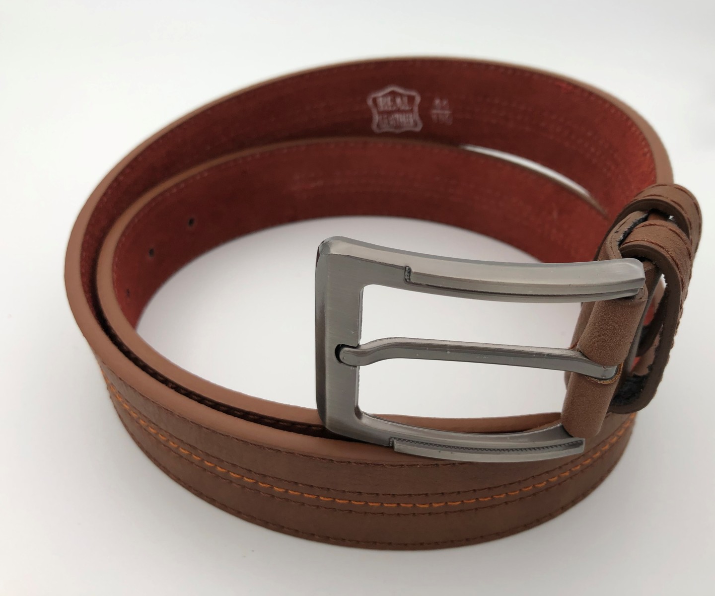 Μία κομψή ξεχωριστή πεντάγαζη δερμάτινη ανδρική ζώνη με ιδιαίτερο χρώμα και στυλάτο σχεδιασμό, τέλειο φινίρισμα διακρίνοντας σε όλο το μήκος της το πορτοκαλί γαζί δίνοντας της ένα τόνο επιπλέον ομορφιάς, ματ αγκράφα νικελίου με στρογγυλεμένες άκρες για να τονίσει το στυλ, την κουλτούρα σας και την κομψότητα στις εμφανίσεις σας.50% δέρμα αγελάδος- 50% αναγεννημένο δέρμα. (Πλάτος 4cm).