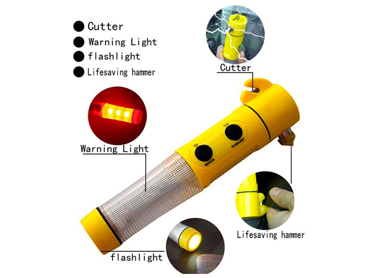Αδιάβροχος συμπαγής φακός εκτάκτου ανάγκης για το αυτοκίνητο ή το σκάφος είναι ένα πολυεργαλείο με 4 λειτουργίες: