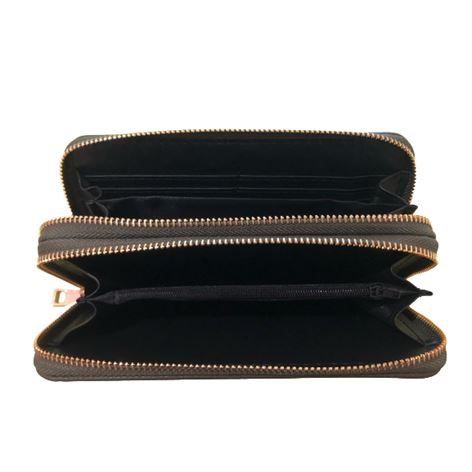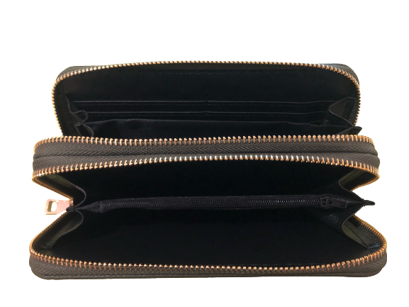 Γυναικείο μεγάλο πορτοφόλι πράσινου χρώματος με σαγρέ υφή το οποίο διαθέτει 4 θήκες εσωτερικά, 1 θήκη με φερμουάρ και 12 θήκες για κάρτες.