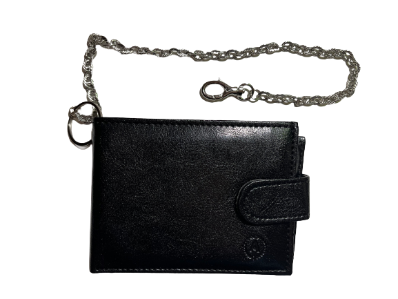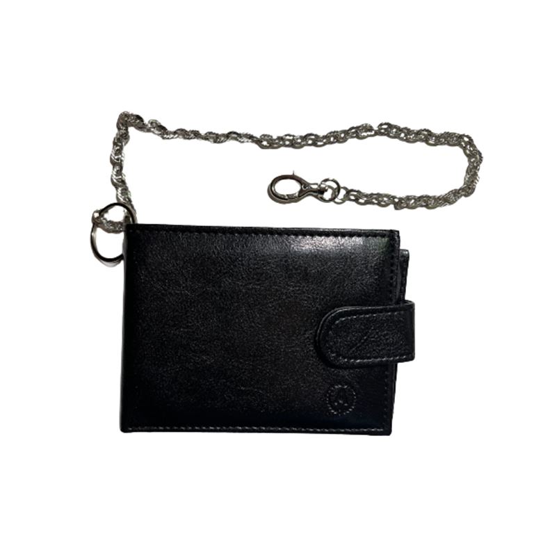 Ανδρικό πορτοφόλι με κούμπωμα ANNIE LEATHER μαύρο χρώμα και αλυσίδα